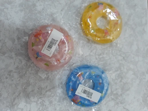 Заказывала с розовым кругом в виде пончика, а пришёл салатовый круг.