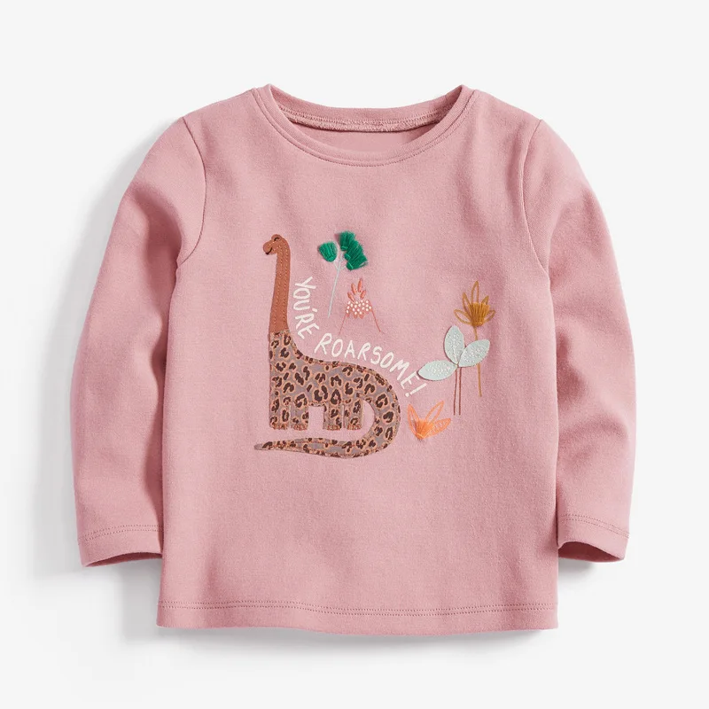 Детская осенняя хлопковая футболка с длинным рукавом и рисунком динозавра