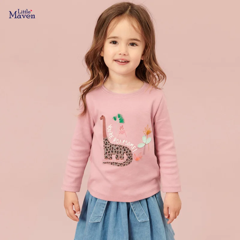 Little maven/рубашки с длинными рукавами для маленьких девочек Детская осенняя одежда с рисунком динозавра, Детские хлопковые футболки