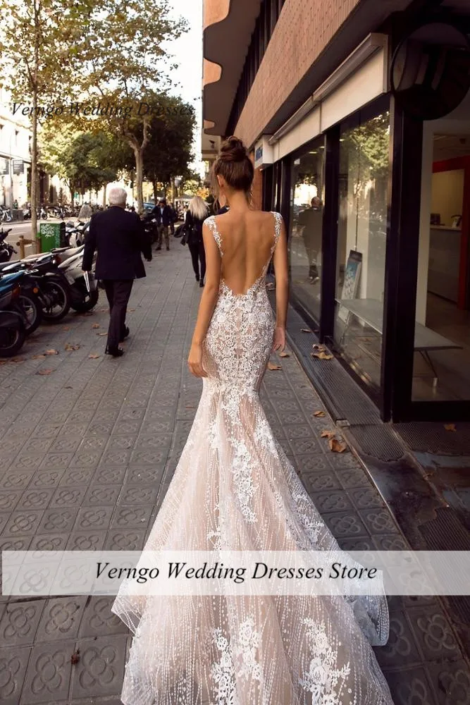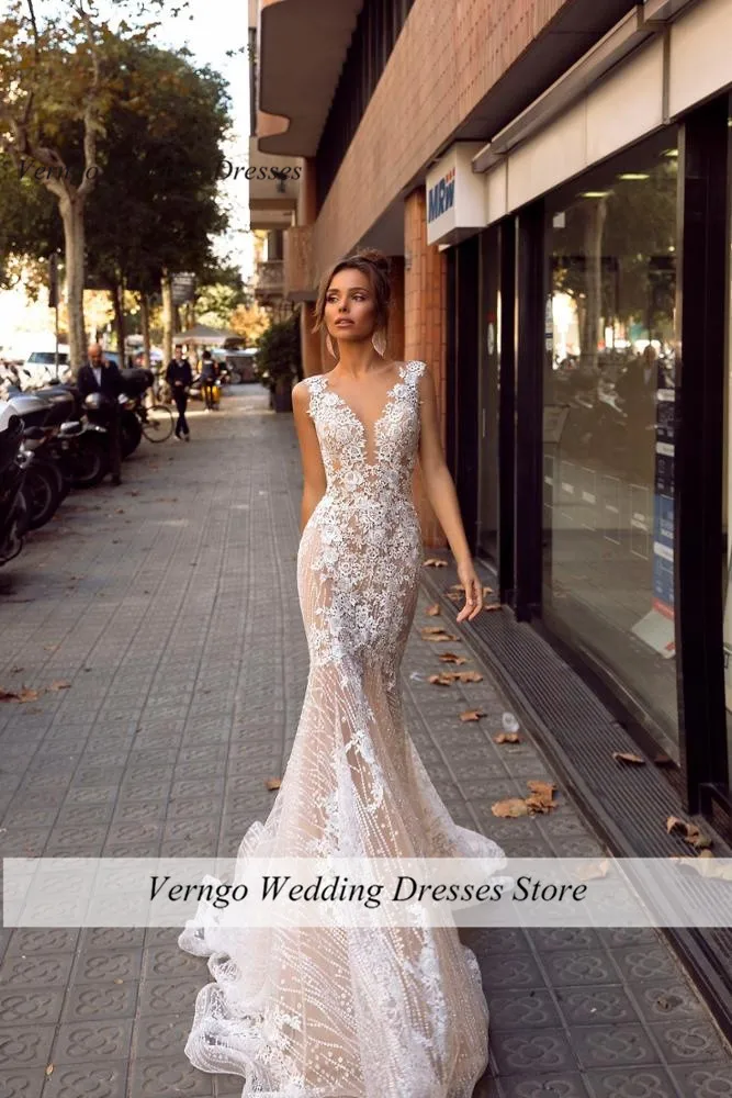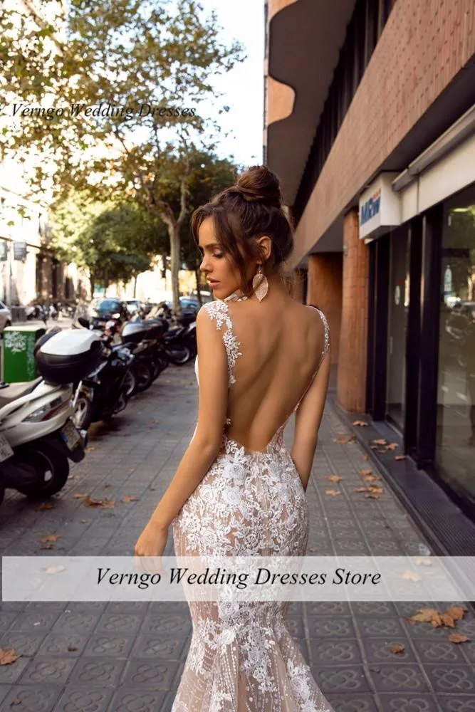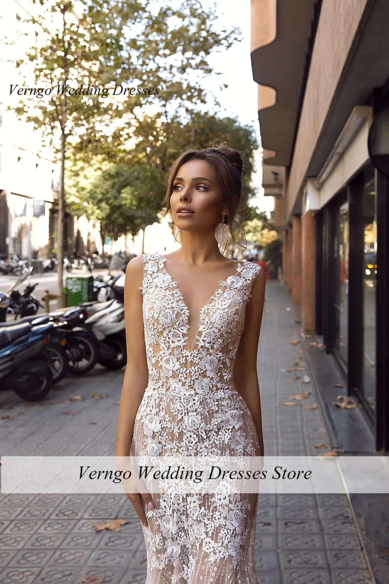 Свадебное платье-Русалка Verngo цвета шампань, кружевное Цветочное платье для невесты, 2020 сексуальное элегантное платье с V-образным вырезом