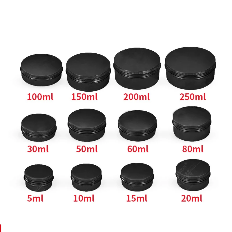 5g-250 г металлические алюминиевые круглые жестяные банки в коробке, черные пустые, для косметического крема, банка, чехол, крышка с резьбой, контейнер для бальзама для губ