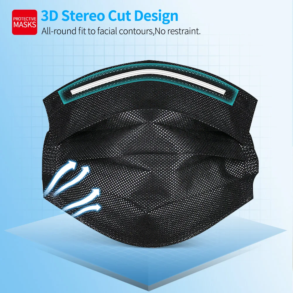 3-слойная черная маска для лица, одноразовая Защитная маска для рта...