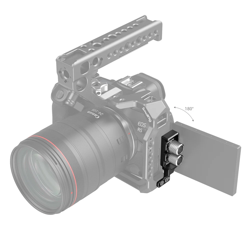Ключевые особенности:1. Для SmallRig R5 и R6 Cage 2982.2. Крепится к клетке с помощью двух винтов М3.3. Обеспечивает кабели HDMI и USB-C.4. Предотвращает случайное отключение кабеля.