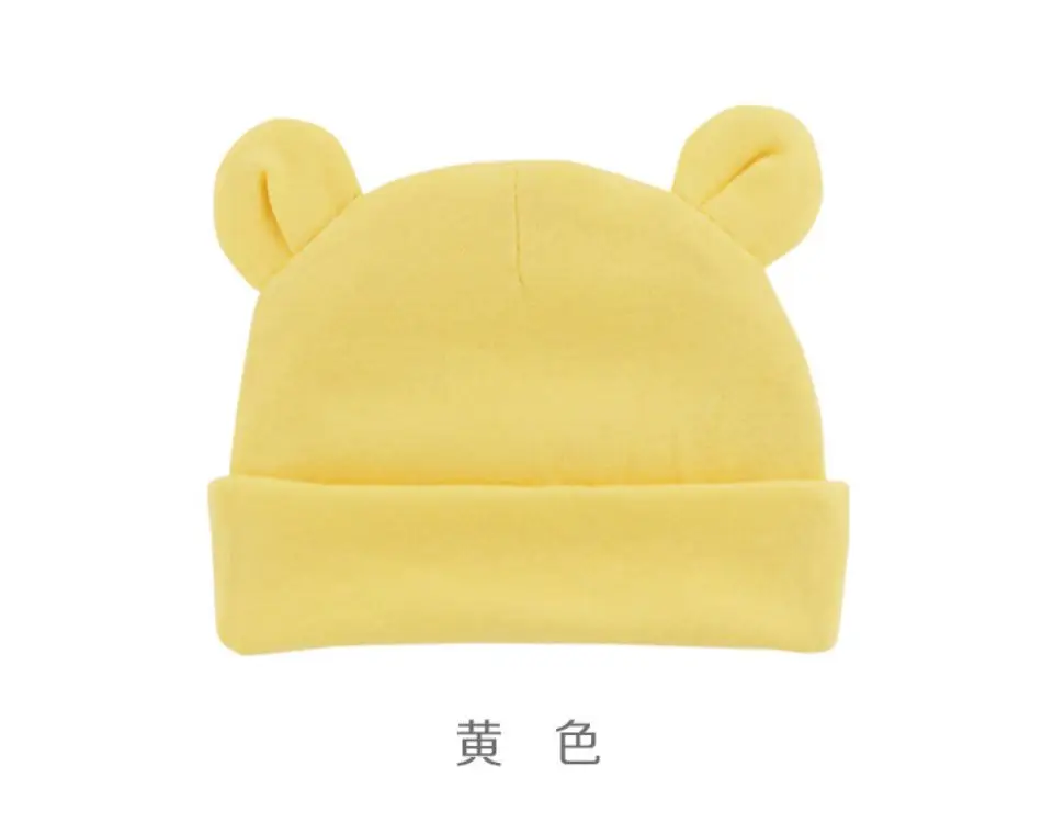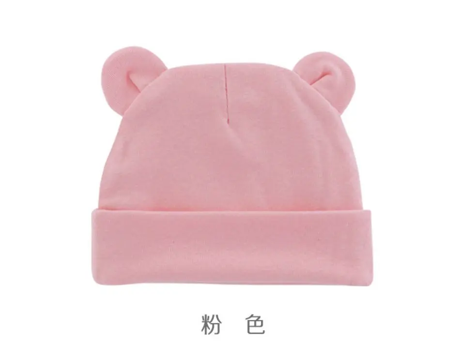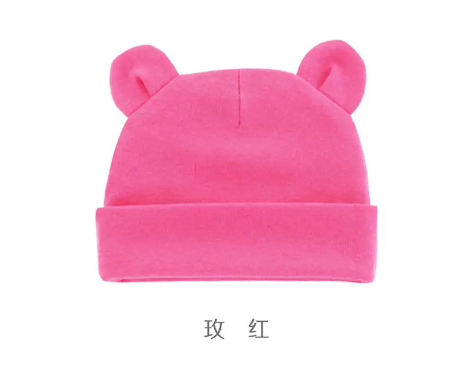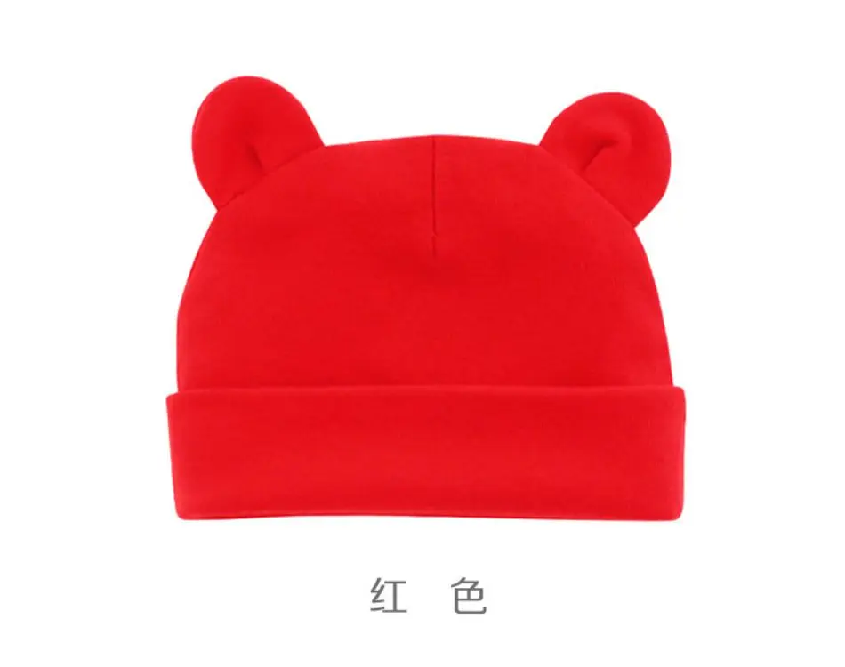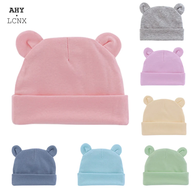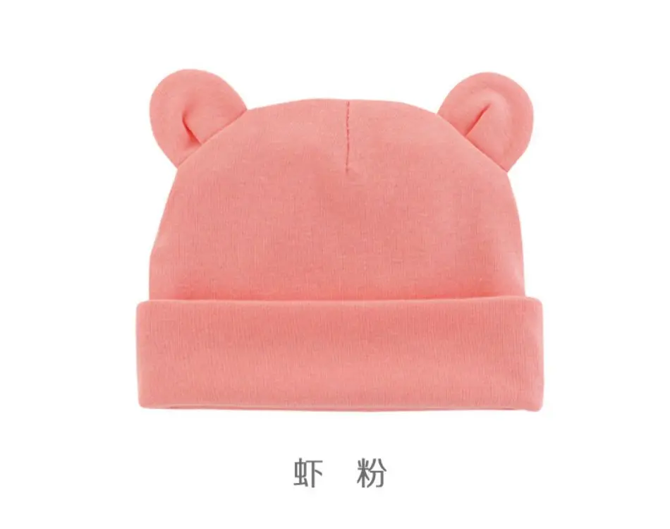 Шапка-бини для новорожденных мальчиков и девочек, зимняя теплая шапка с ушками, хлопок, реквизит для фотосъемки, оптовая продажа, однотонная шапочка