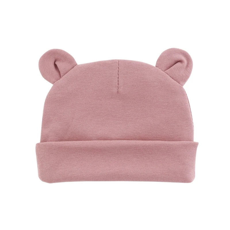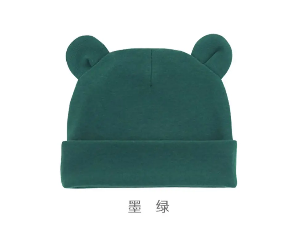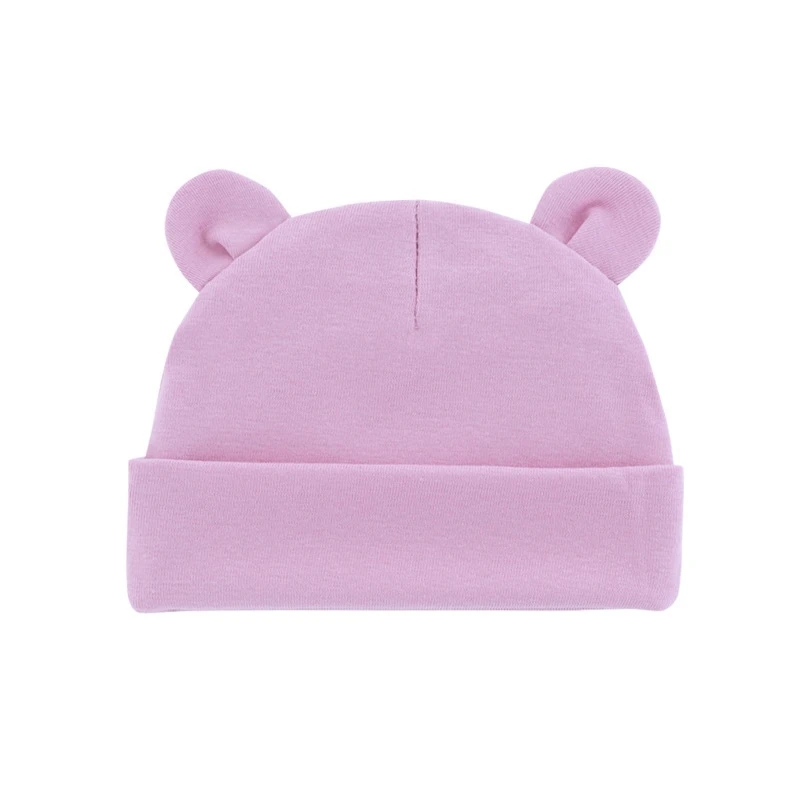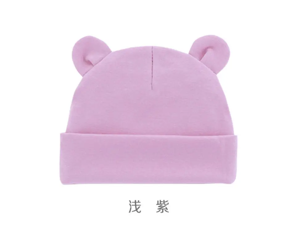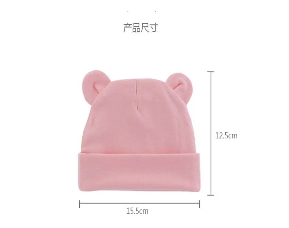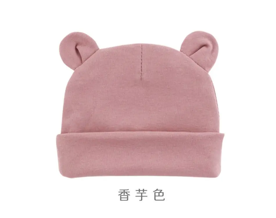 Шапка-бини для новорожденных мальчиков и девочек, зимняя теплая шапка с ушками, хлопок, реквизит для фотосъемки, оптовая продажа, однотонная шапочка