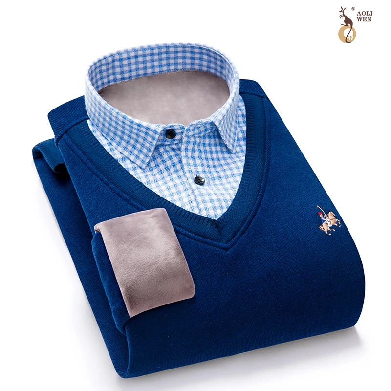 Мужская зимняя Фланелевая рубашка с длинным рукавом и V-образным вырезом
