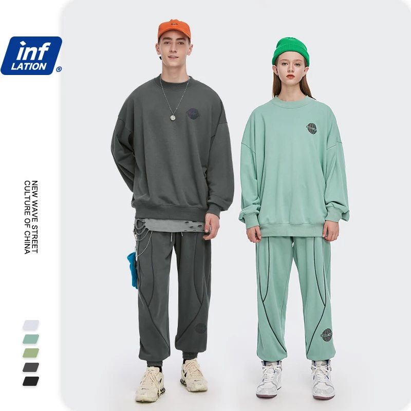 Мужской спортивный костюм INFLATION, хлопковый спортивный костюм, свитшот для пары, 2021