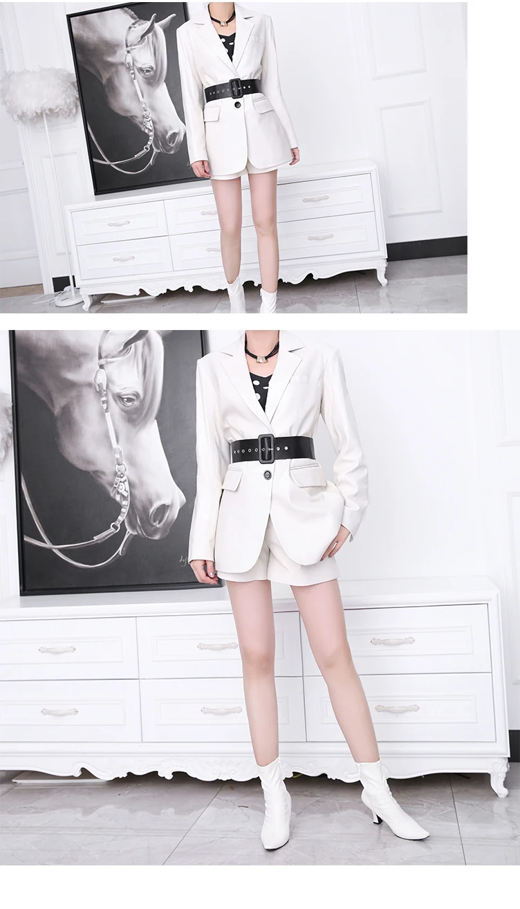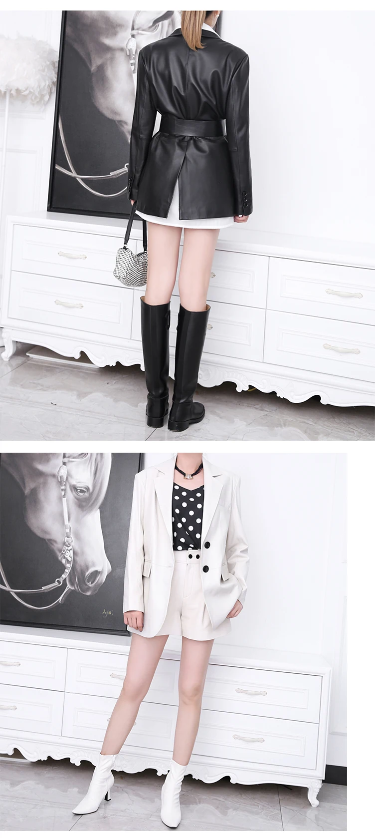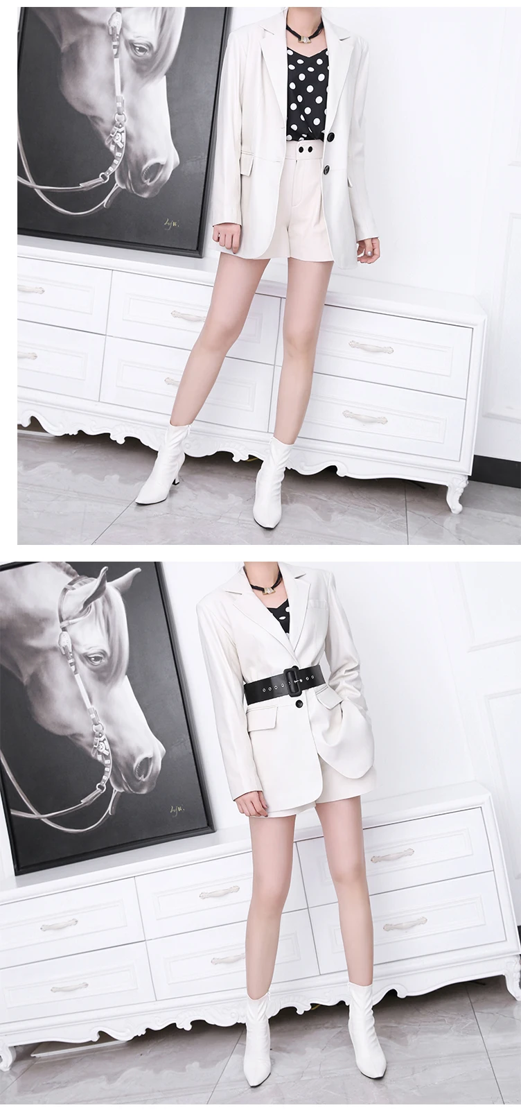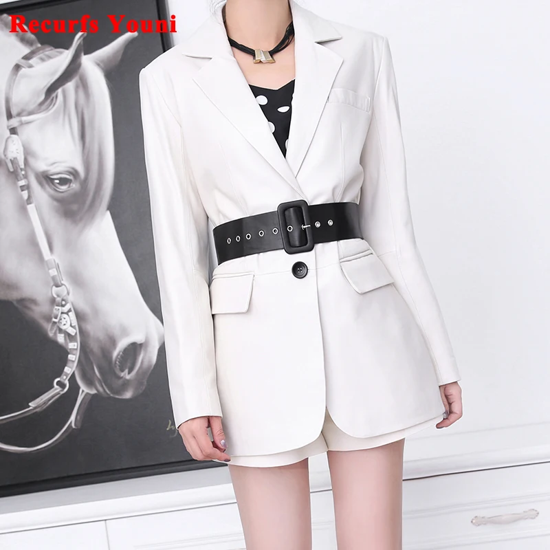 Женская одежда, зимний свободный костюм из натуральной кожи, женская модная красивая белая куртка, Женское пальто с длинными рукавами и поясом