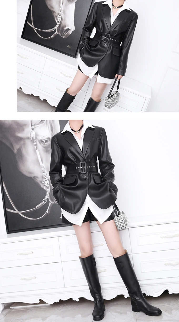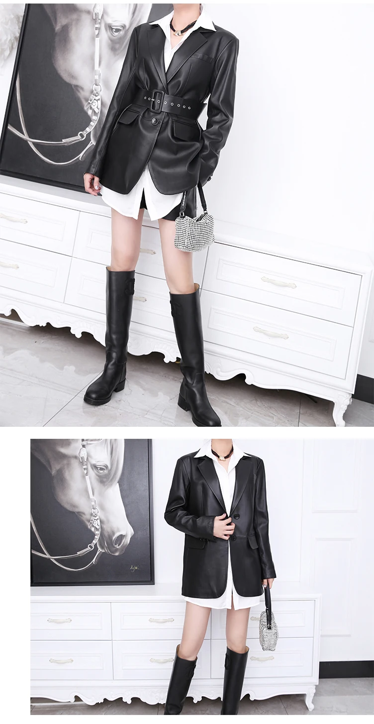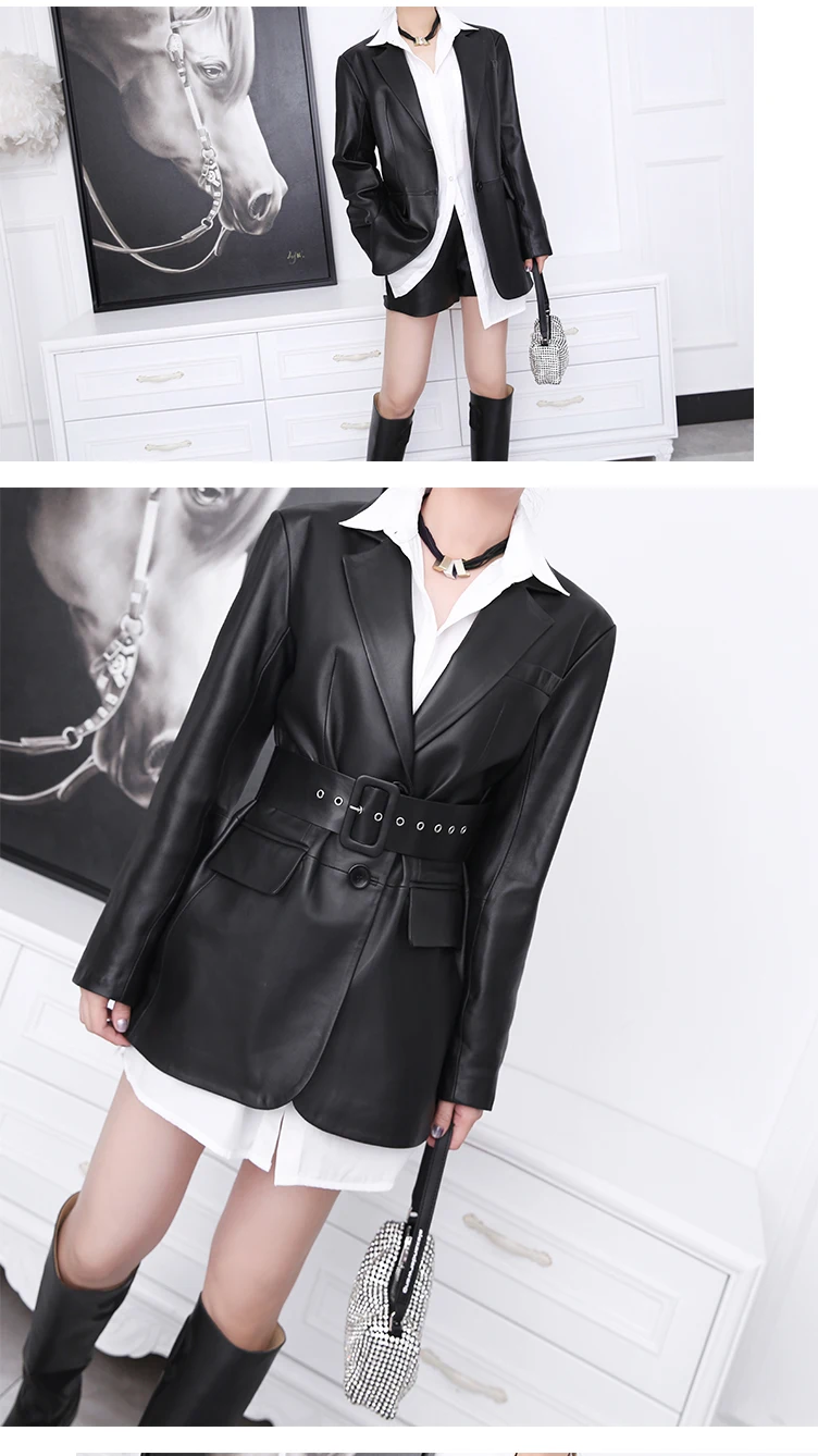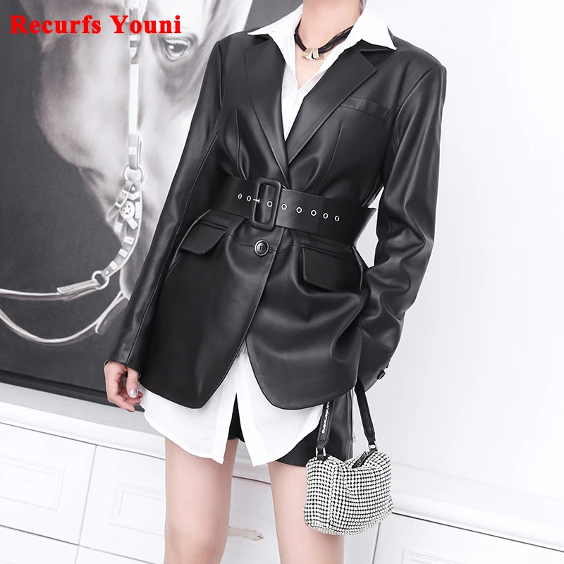 Женская одежда, зимний свободный костюм из натуральной кожи, женская модная красивая белая куртка, Женское пальто с длинными рукавами и поясом
