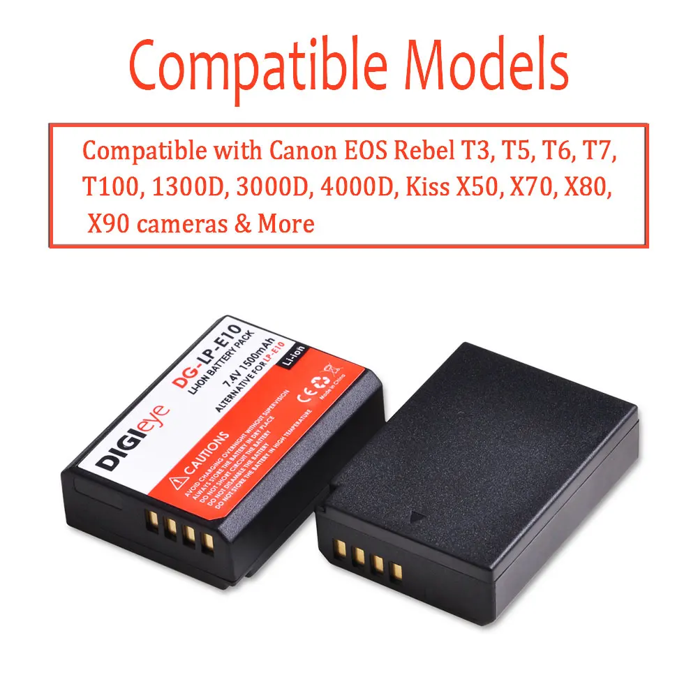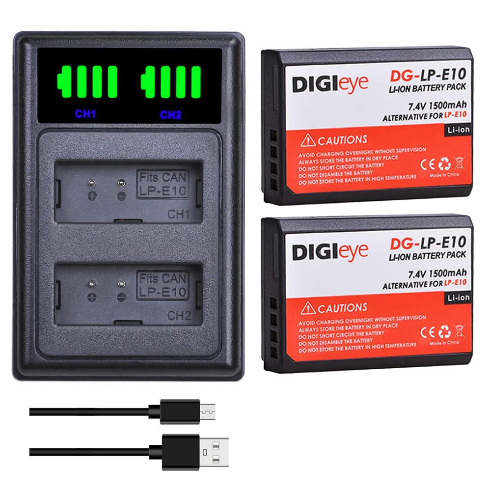 Аккумулятор для фотоаппарата LP-E10 LP E10 + двойное зарядное устройство со светодиодной подсветкой типа C для Canon EOS 1100D 1200D 1300D Kiss X50 Kiss X70 Rebel T3 T5 T6 T7