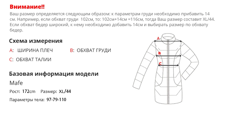 заказала эту куртку серого цвета размера 5xl, продавец написал, что нет в наличии(хотя на странице товара было доступно,видимо не успевают обновлять сайт), предложил другой цвет, пурпурный. В итоге договорились на другую модель подороже, доплатила 10$. Не первая моя покупка в этом магазине, качество товара всегда хорошее, не всегда понятна таблица, и продавец советует размер не всегда точно. На опыте поняла, что мне на рост 165см, плечи 46см, ОГ 110 и ОБ 120 зимнее нужно брать 5xl. Это мои ощущения, не люблю обтягивающую и стесняющую движения одежду. Согласно таблице, надо к самому широкому месту тела прибавлять минимум 14см, по этому параметру и подбирать размер. А вообще на распродажах можно очень выгодно купить пальто и куртки в этом магазине, модели интересные и неизбитые, широкий размерный ряд.на фото модель, которую в итоге получила