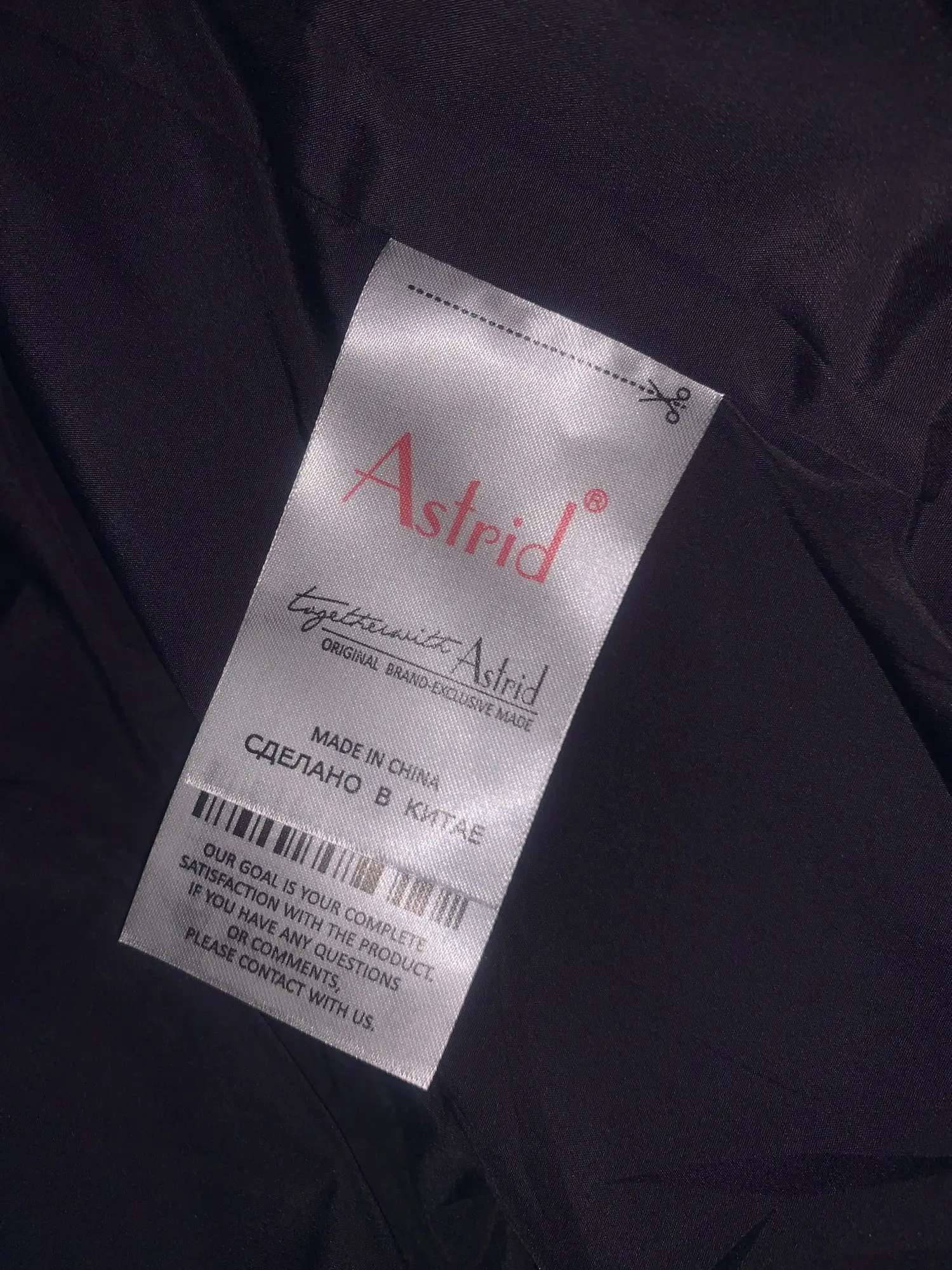 Куртка отличная. Все швы прострочены идеально, фурнитура в полном порядке. ,,Астрид,, - это, в первую очередь, хорошее качество. Очевидно, что эта фирма дорожит своей репутацией, за что ей респект. У меня есть и осенняя куртка этой фирмы, которую ношу уже 2 года. и такая классная, что когда иду в ней по улице, люди оглядываются вслед. А у этой зимней куртки цвет действительно очень необычный: в зависимости от освещения варьируется от баклажанового до коричневого. А на фотографии получился вообще интересным. Особая благодарность продавцу и логистическим компаниям, так как доставка за 48 дней для нашего региона - очень хороший результат.