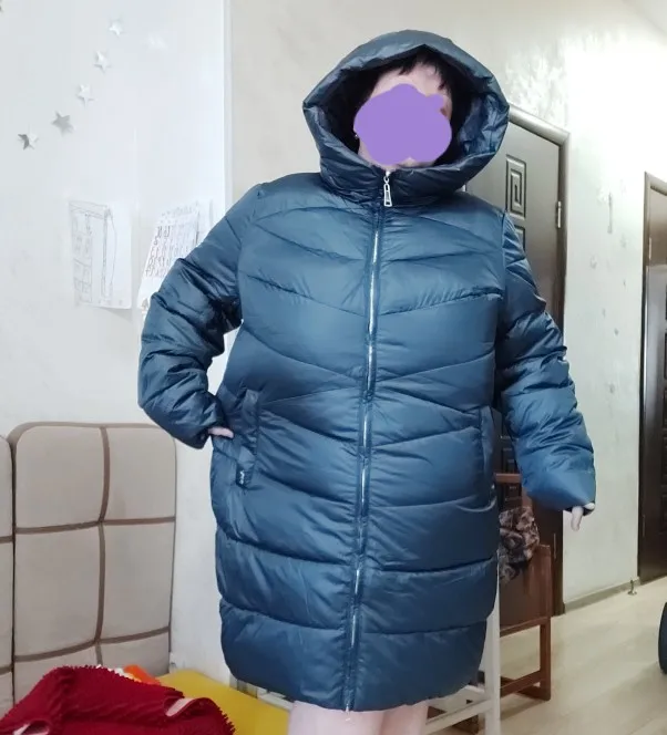 Получила пуховичок, через 14 дней,после заказа. Очень сомневалась по поводу размера,читала отзывы,с продавцом не общалась. Мои параметры 120 ОГ, 130 ОБ,как говорят - фигура груша. Руки и плечи у меня не очень полные,поэтому,как правило, если в бёдрах хорошо,то в плечах и груди очень свободно. Хотела заказать 5 xl, но решила рискнуть,заказав 4xl. Сел достаточно комфортно,хотя в бёдрах впритык. И всё же, покрутившись перед зеркалом, решила оставить этот пуховик. Цвет тоже понравился,меняется в зависимости от освещения. Это моя первая,но надеюсь, не последняя покупка в этом магазине)