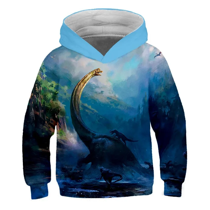 Худи с рисунком динозавра для мальчиков и девочек, осенне-зимние худи с животными для подростков, детские костюмы для маленьких мальчиков, свитшот, одежда
