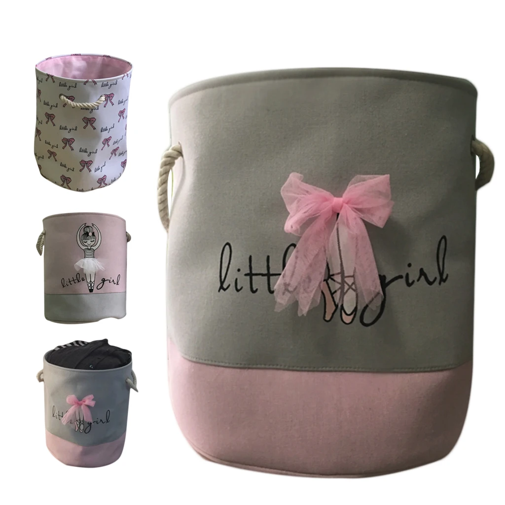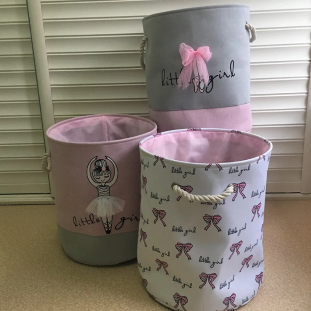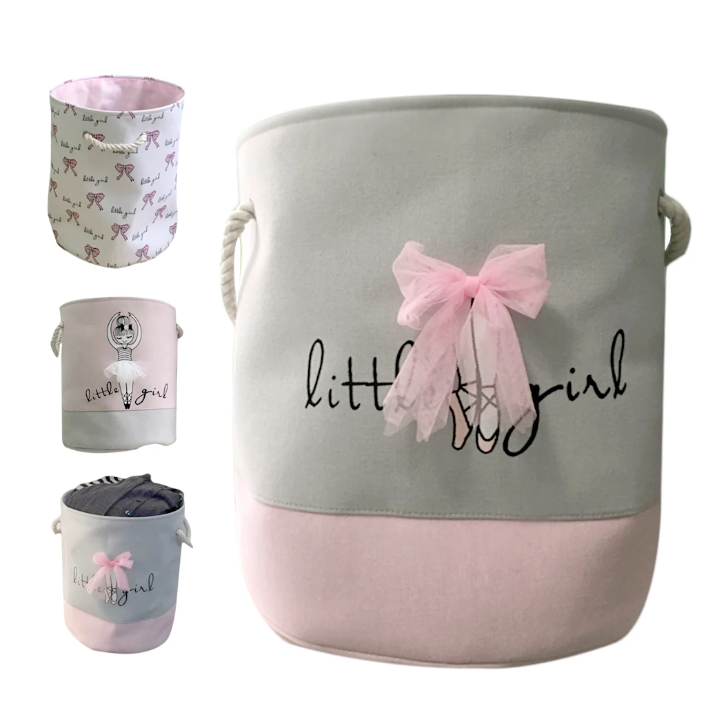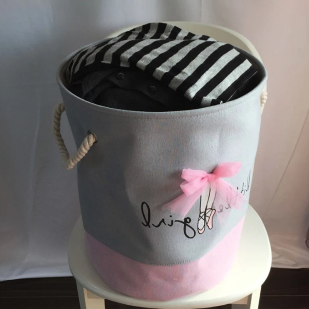 Балетные туфли с бантом для девочек, корзина для хранения из льна и хлопка, круглая, для грязной одежды, холщовые корзины для хранения игрушка ведро