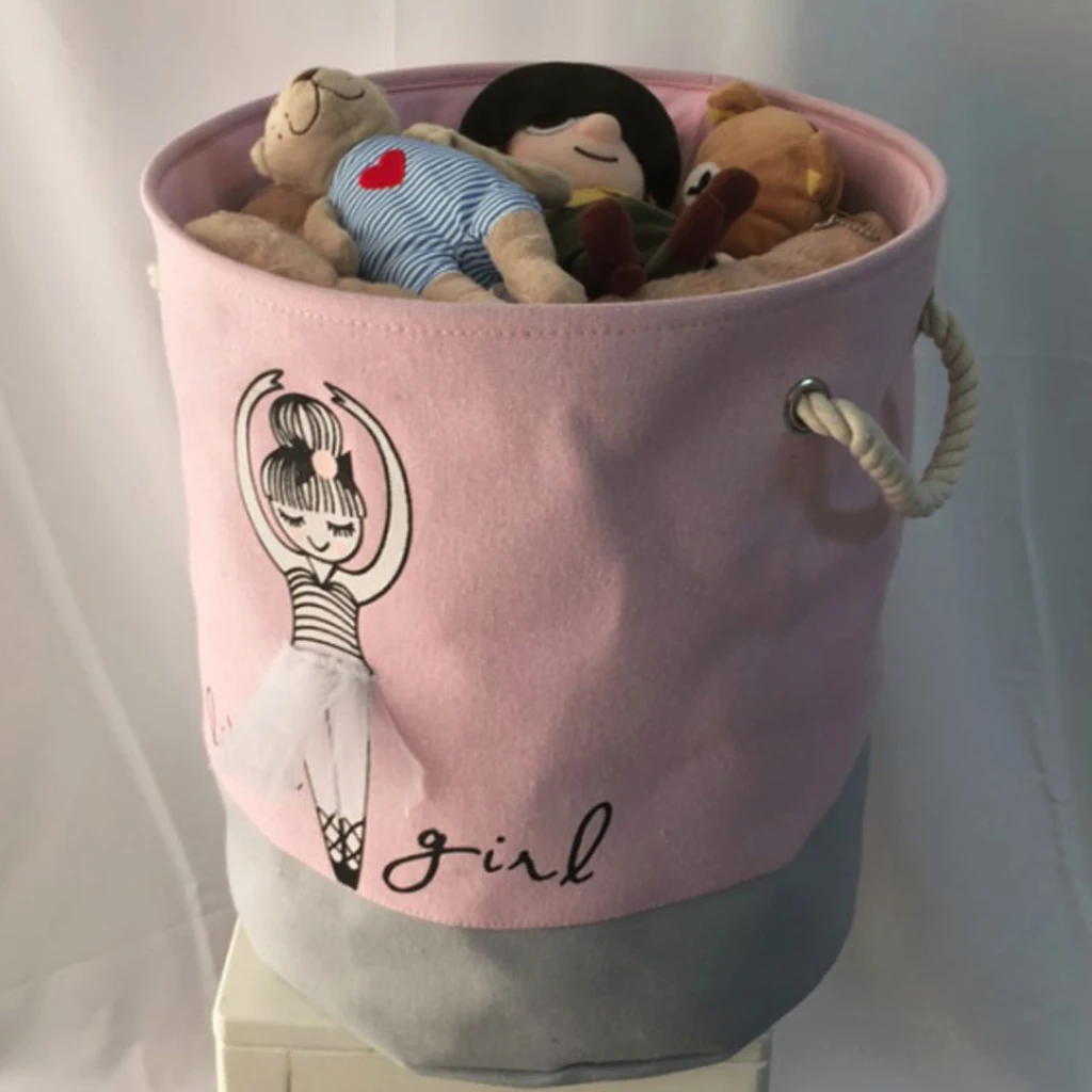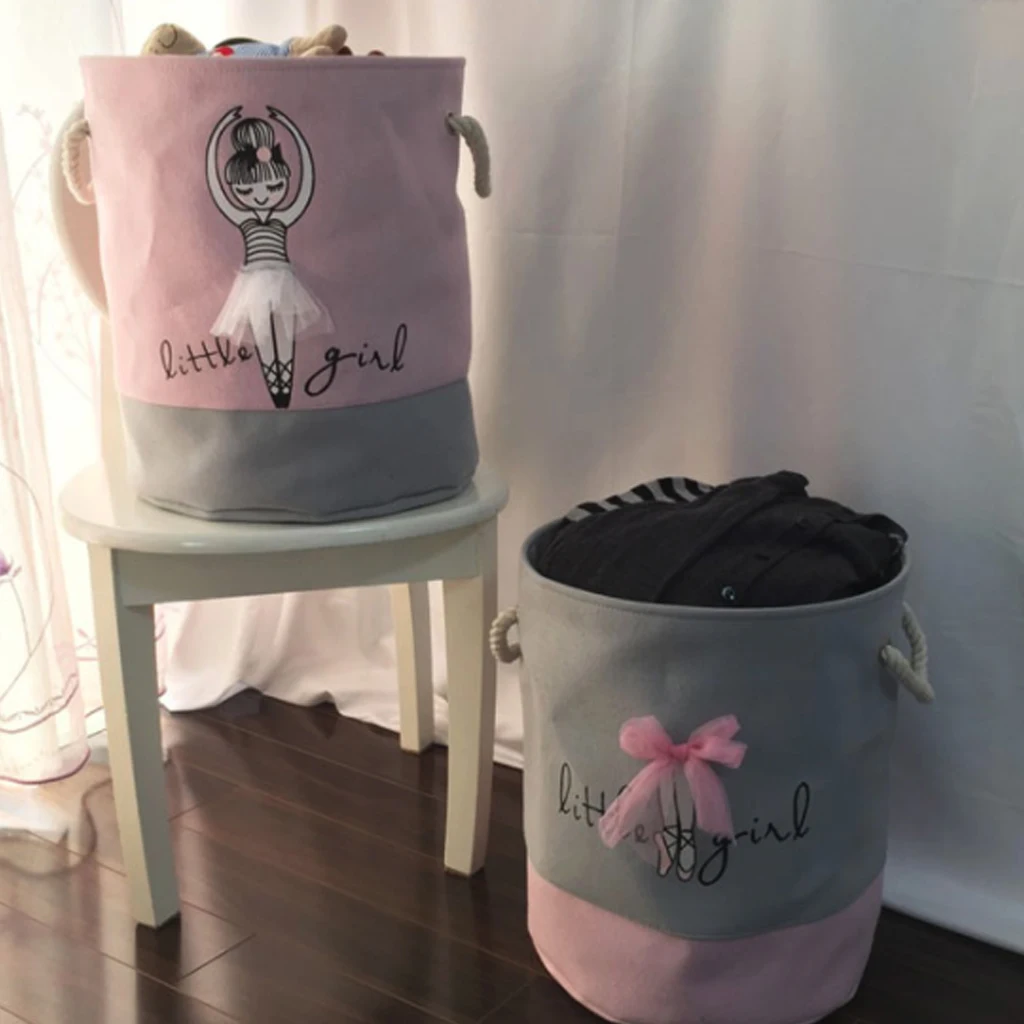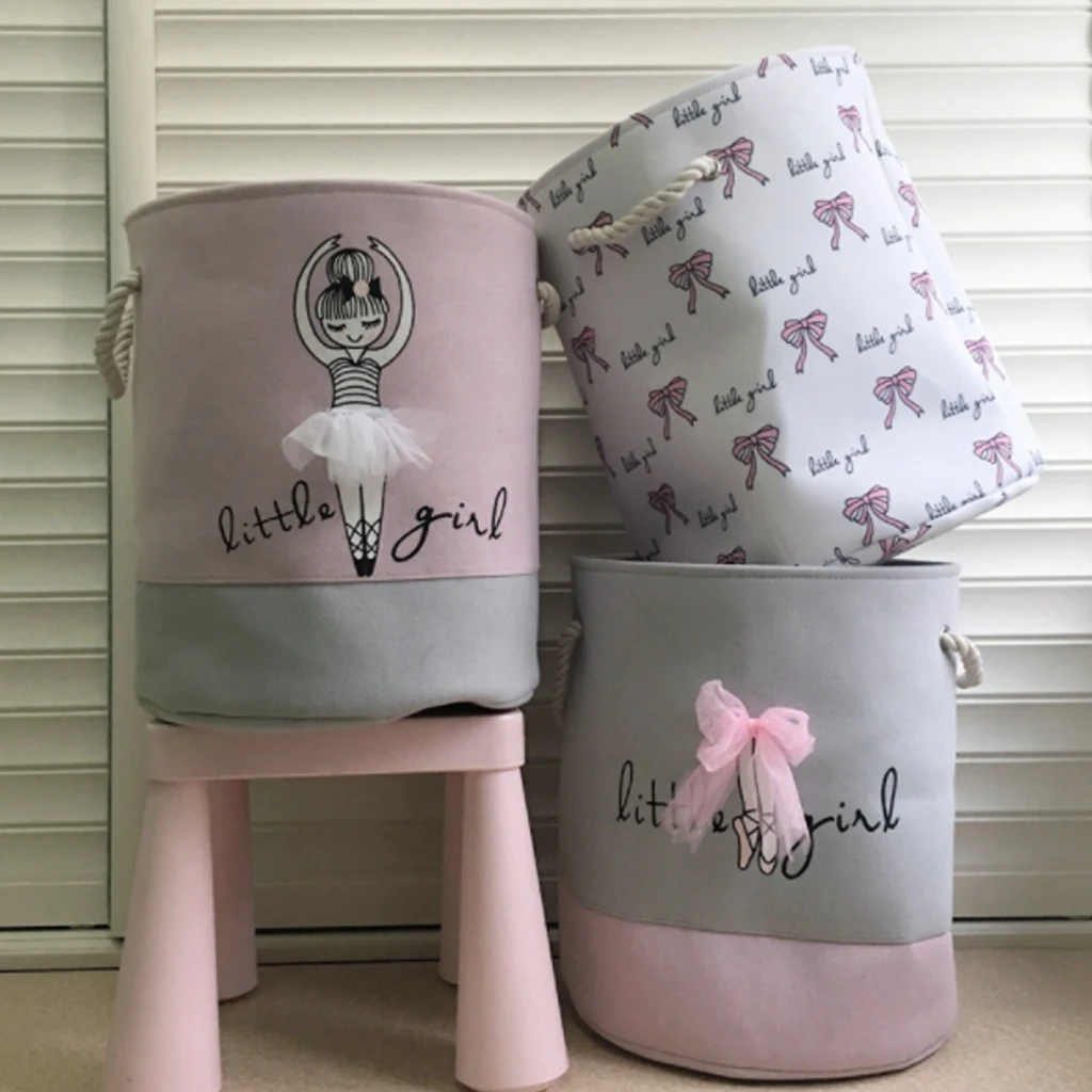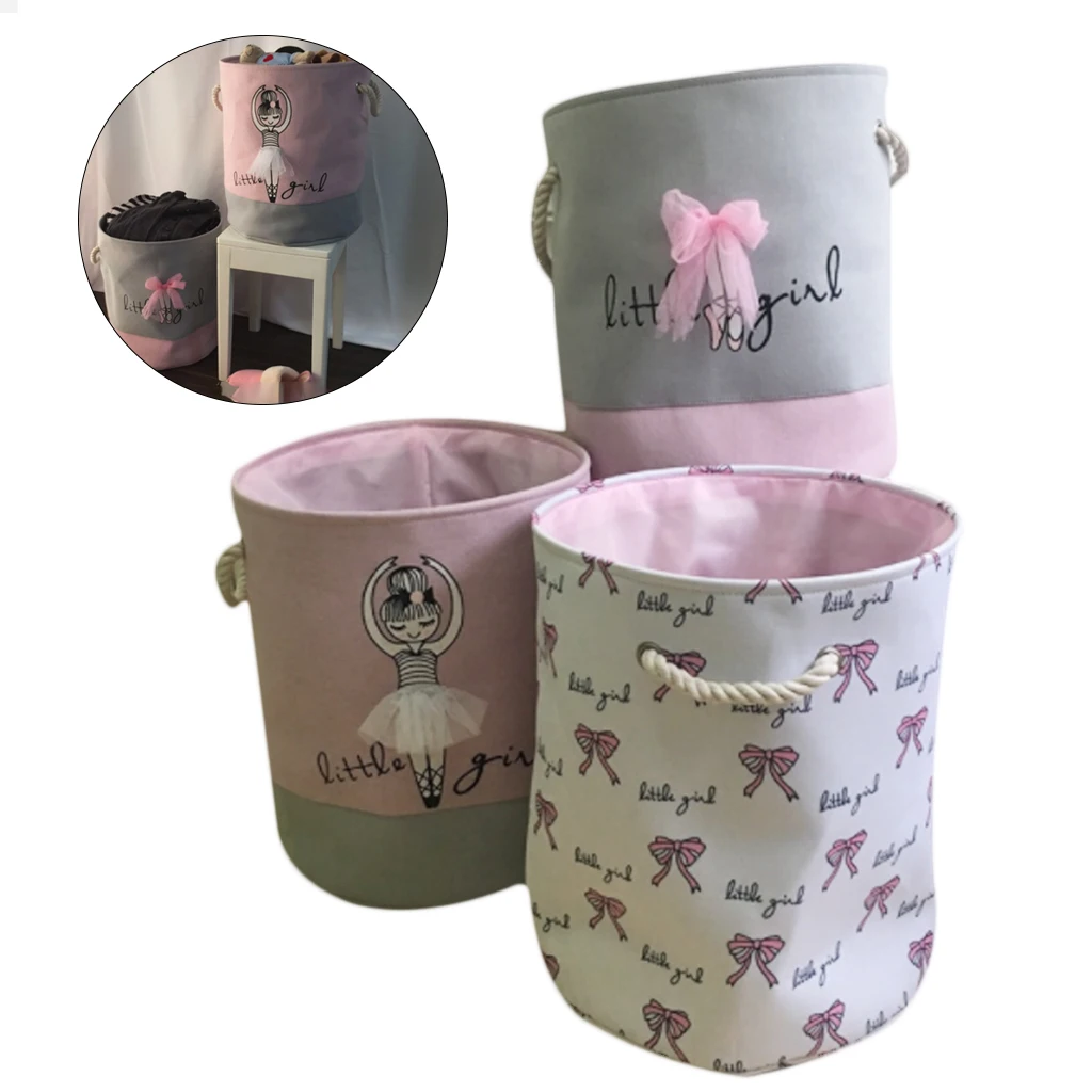 Балетные туфли с бантом для девочек, корзина для хранения из льна и хлопка, круглая, для грязной одежды, холщовые корзины для хранения игрушка ведро