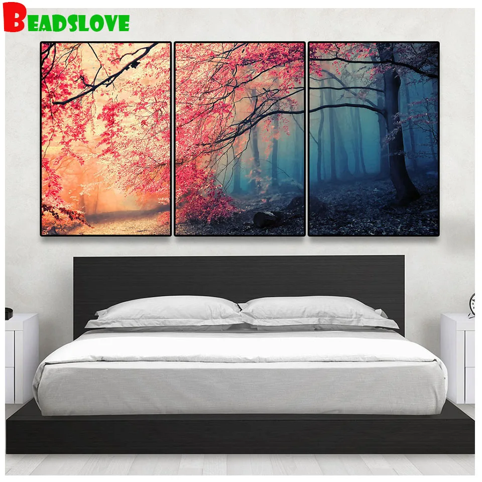 Мозаика-пазлы, красная фотография, картина по номерам Триптих, алмазная вышивка крестиком, мозаика из страз, хобби
