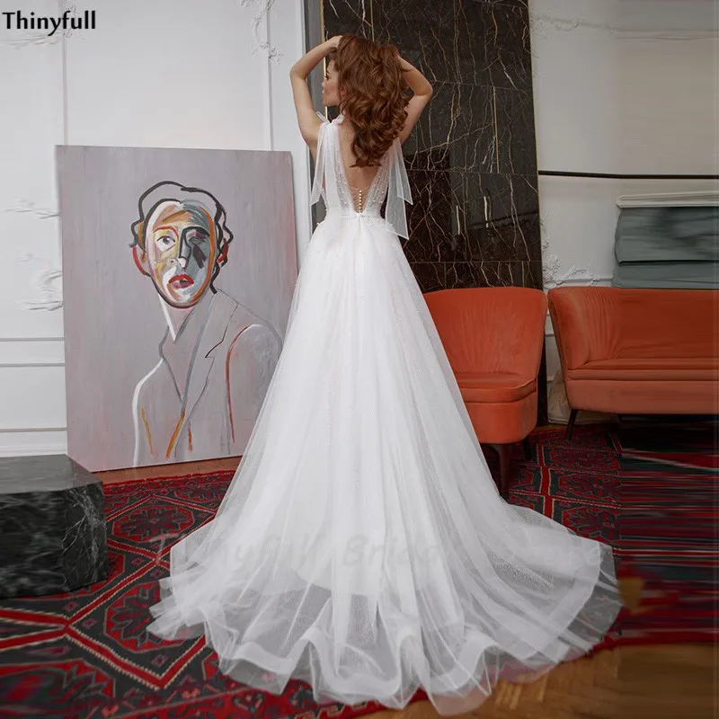 Женское свадебное платье Thinyfull, из тюля, с V-образным вырезом, жемчугом и бисером