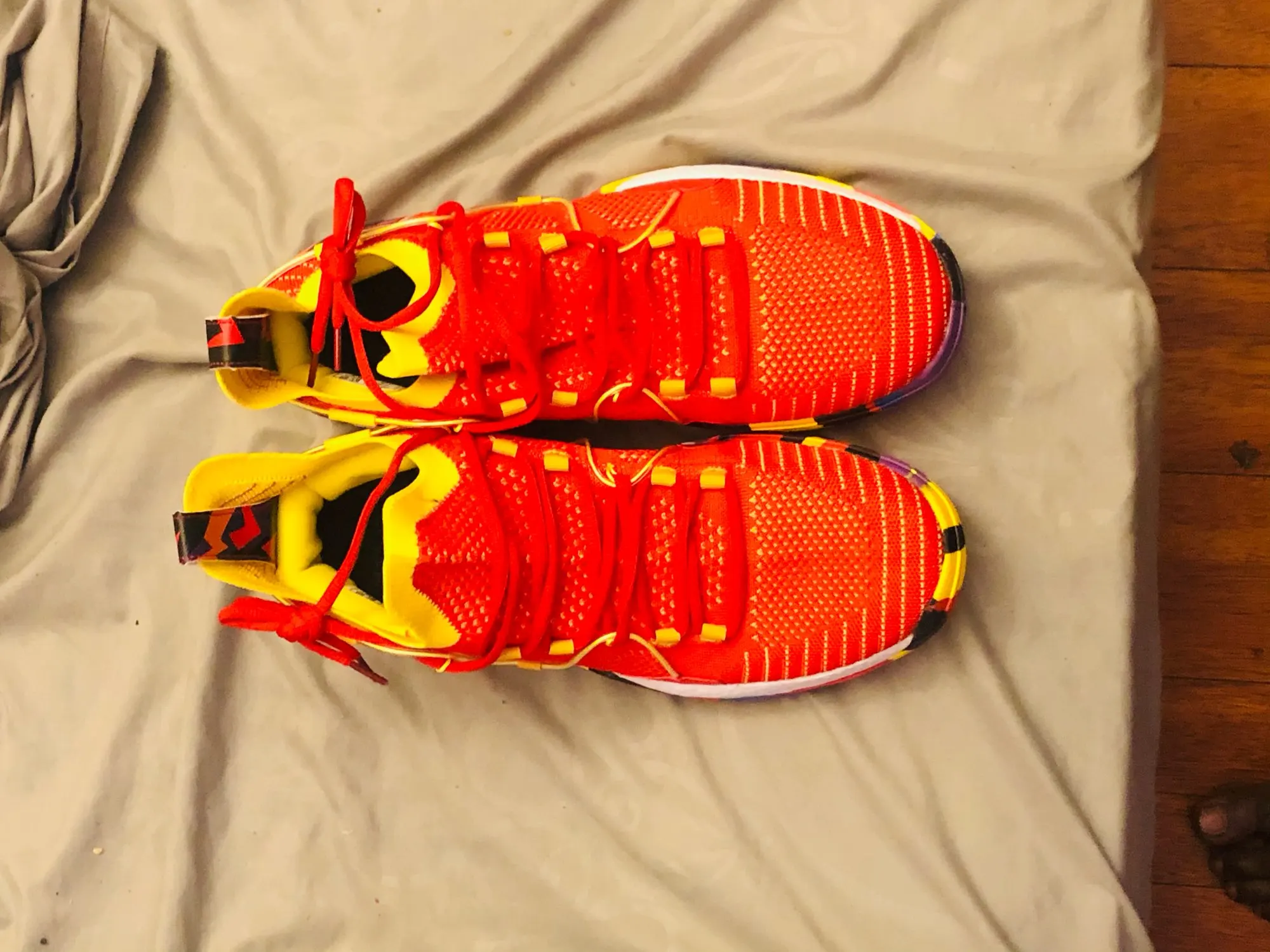 The pictures are not doing this shoes justice because they are very good quality basketball shoes, I’ll compared them to Kyries for sure because they feel like one and the sole grip on them are great, haven’t played in them yet but they definitely feel fantastic on my feet and also if you don’t want to play ball with them they are great street shoes to, they’ll make great sneakers too. The colours is very pretty and pops