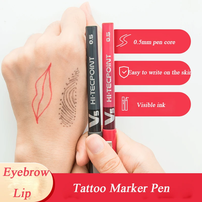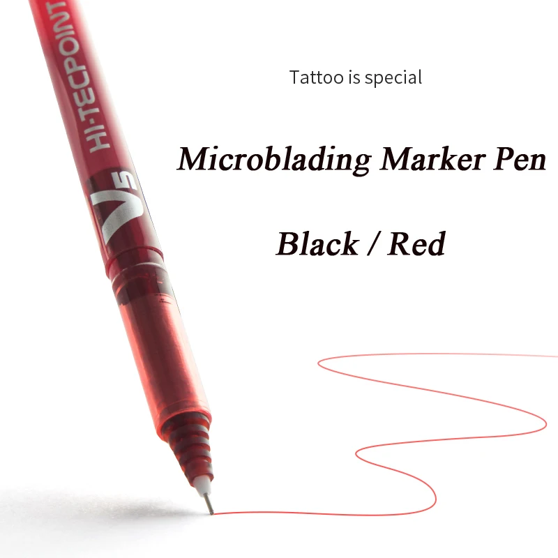 Аксессуары для микроблейдинга, черная, красная тату-ручка 0,5 мм, хирургический инструмент для бровей, губ, кожи, маркерная ручка, принадлежности для татуировок, 5 шт.лот