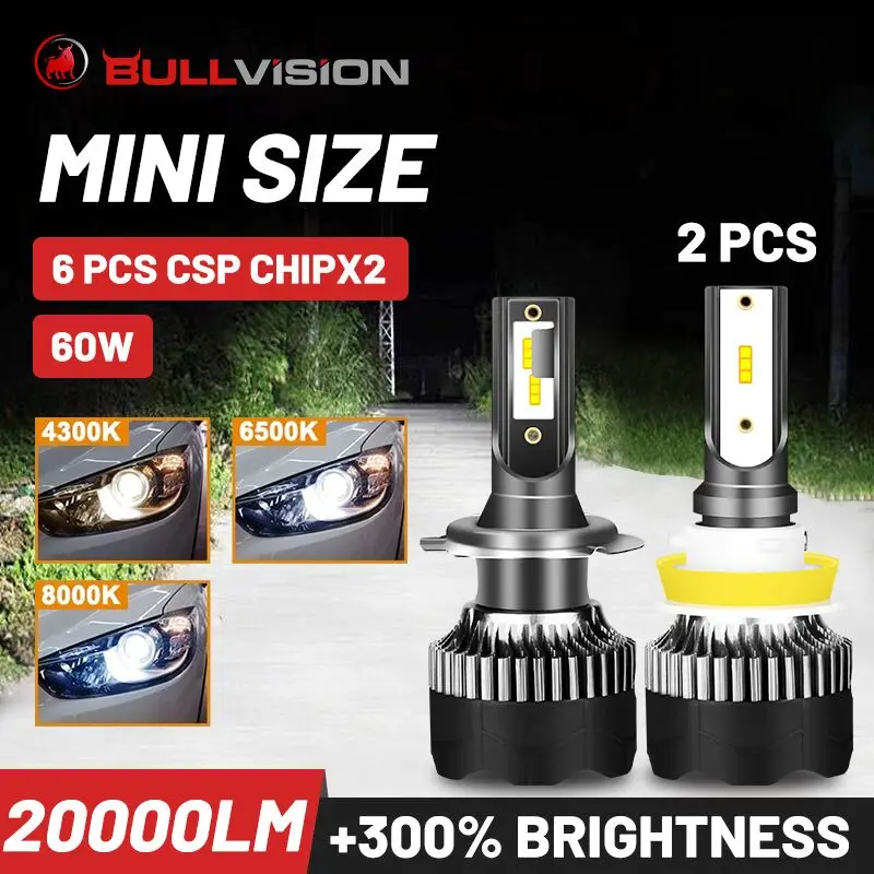 Светодиодсветильник фары BULLVISION H11 H4 H7, лампы Hb3 Hb4 6500K 4300K 8000K H1 H8 H9 9005 9006, Светодиодные Автомобильные фары, турбопротивотуманные фары лм