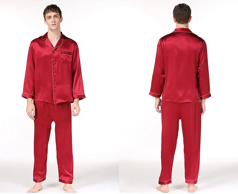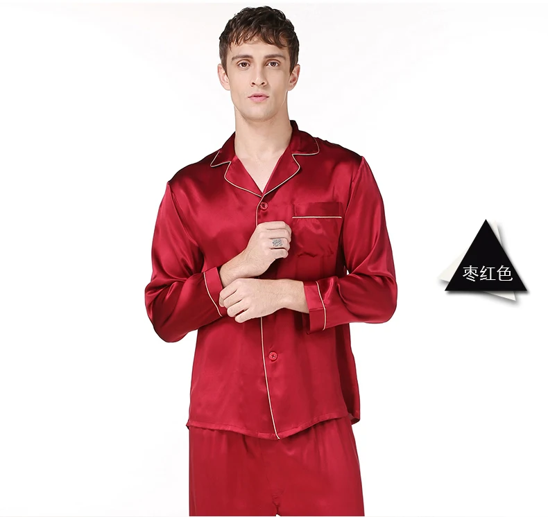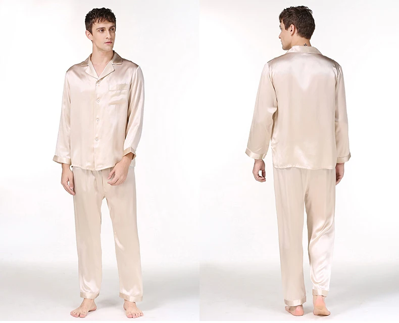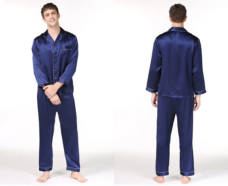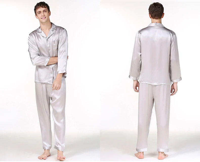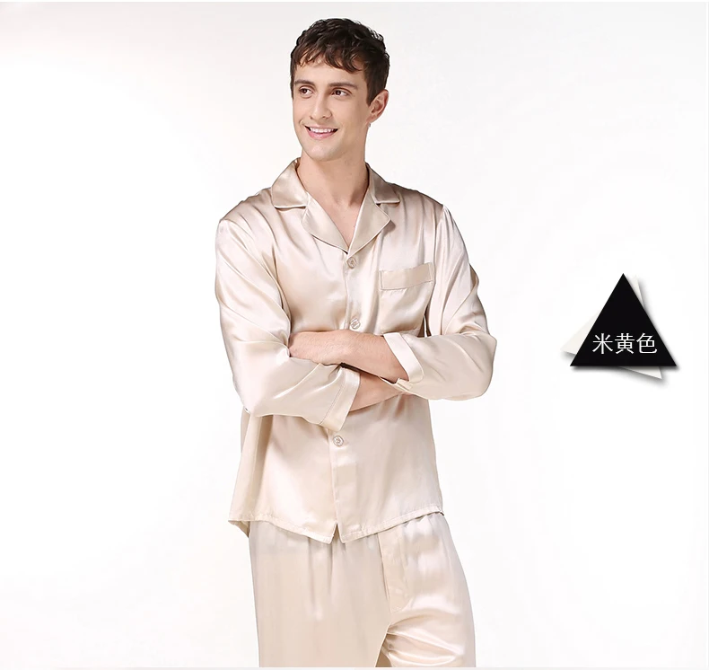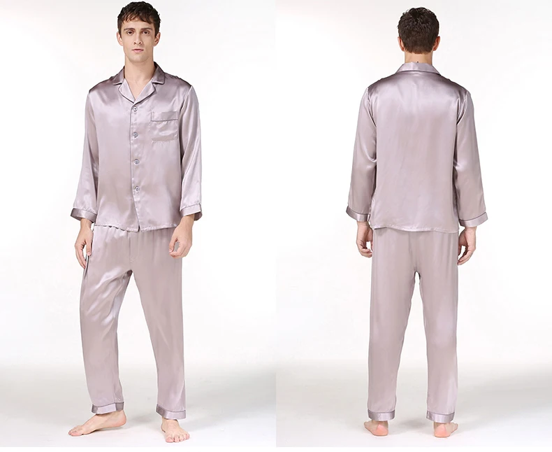 Пижамный комплект мужской из натурального шелка, с длинным рукавом, T9002