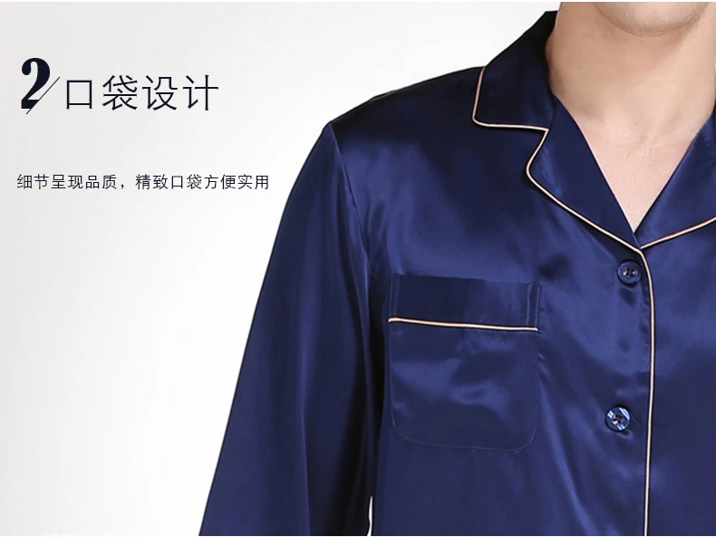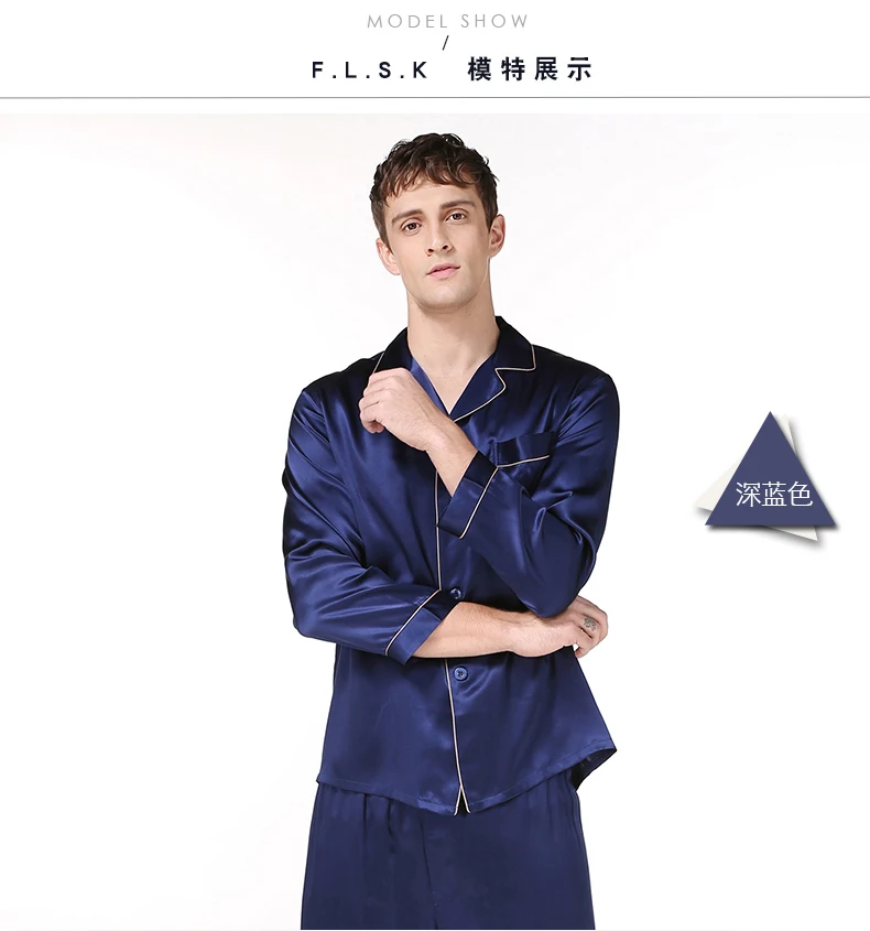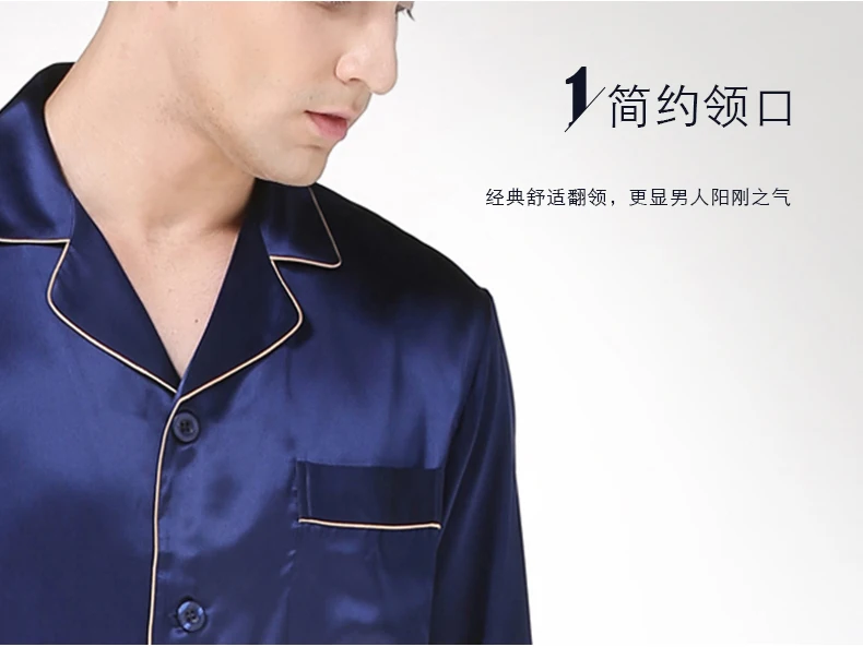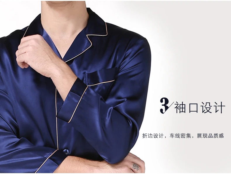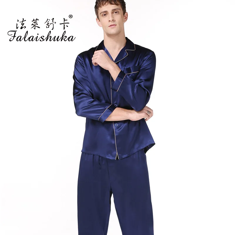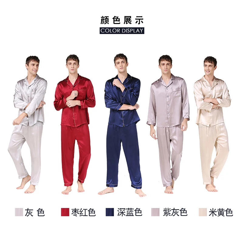 Пижамный комплект мужской из натурального шелка, с длинным рукавом, T9002