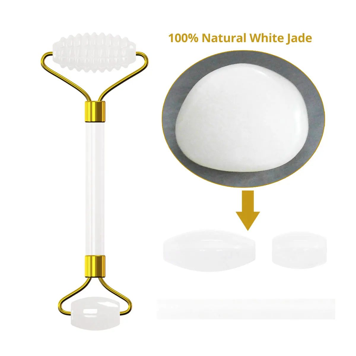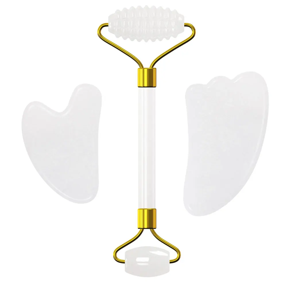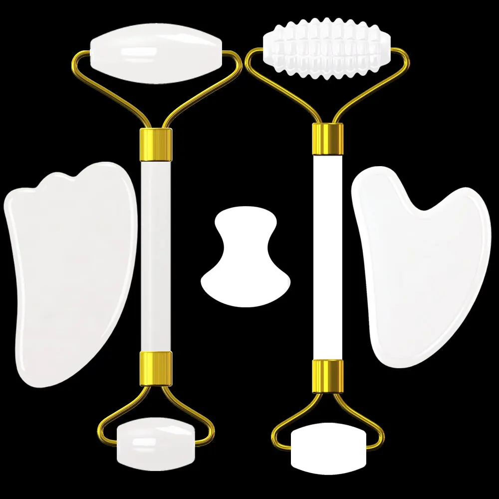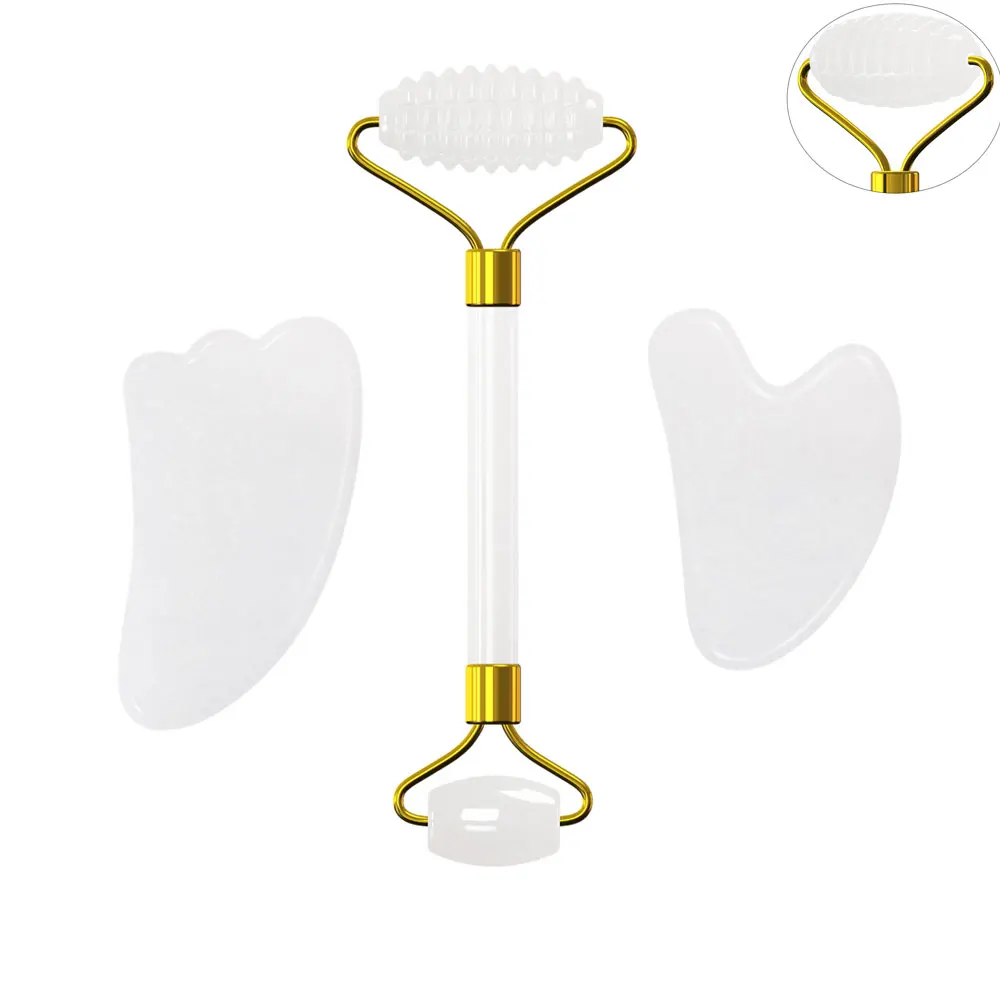 Нефритовый роллер Guasha скребок для доски, набор из роликовый лицевой натурального белого кварца для массажа лица, Инструмент Для Массажа Гуаша, камень, массажер для лица