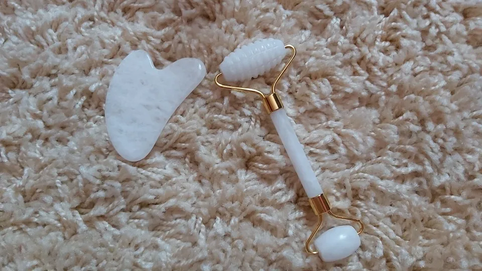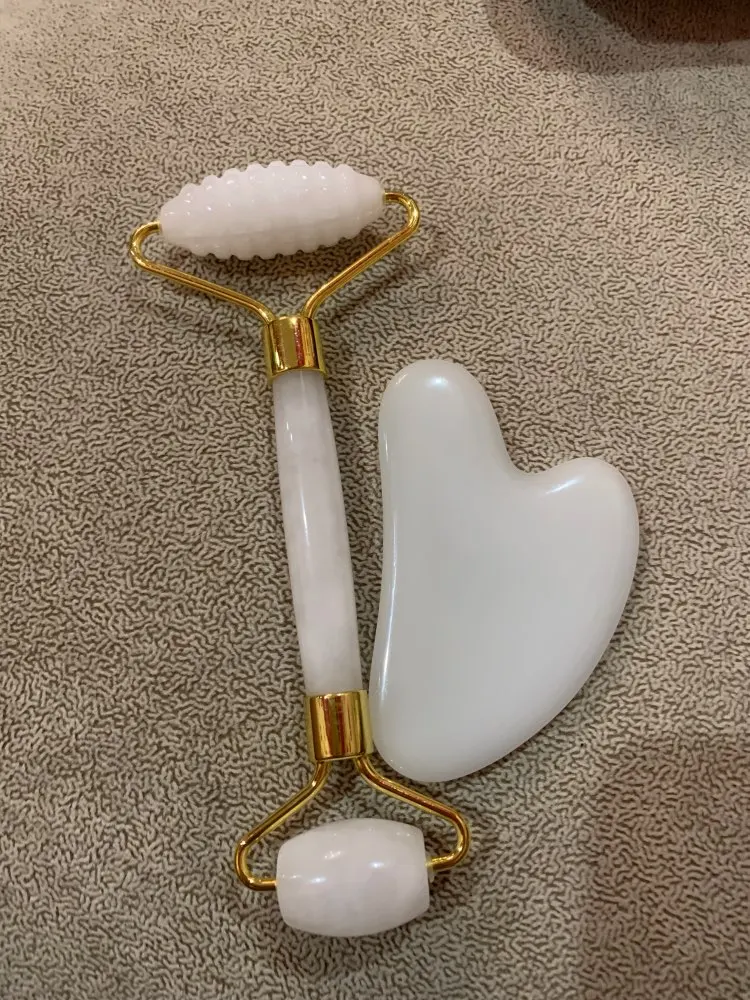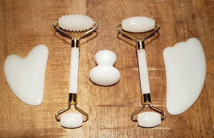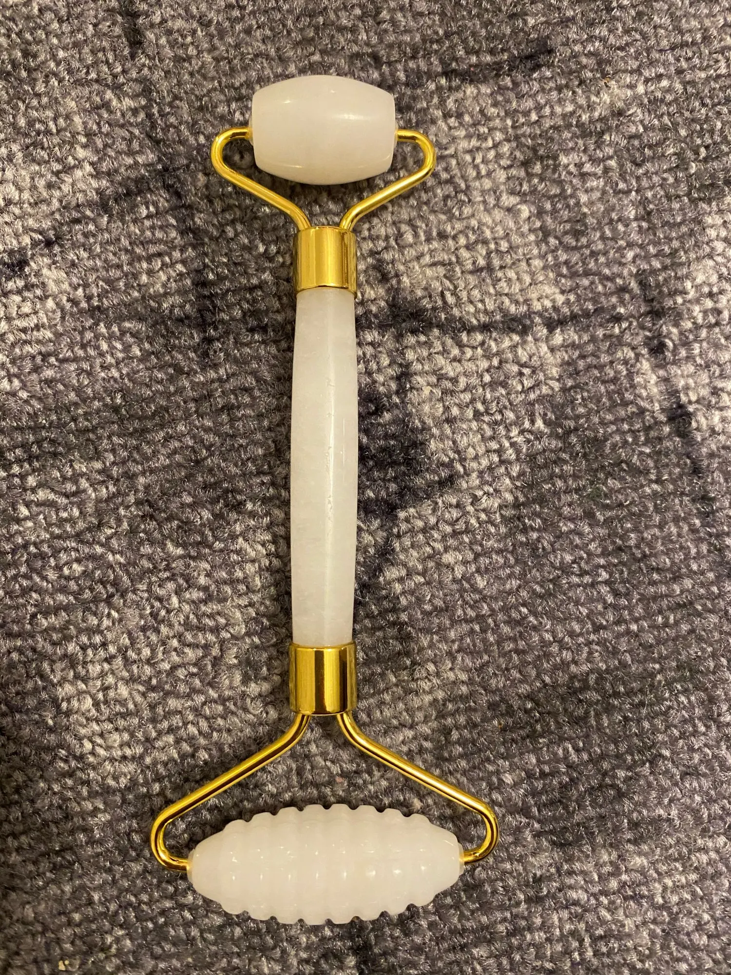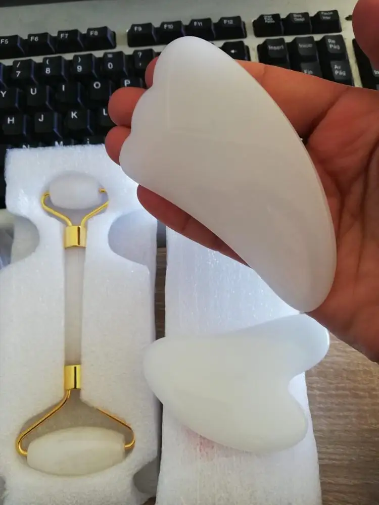 Нефритовый роллер Guasha скребок для доски, набор из роликовый лицевой натурального белого кварца для массажа лица, Инструмент Для Массажа Гуаша, камень, массажер для лица