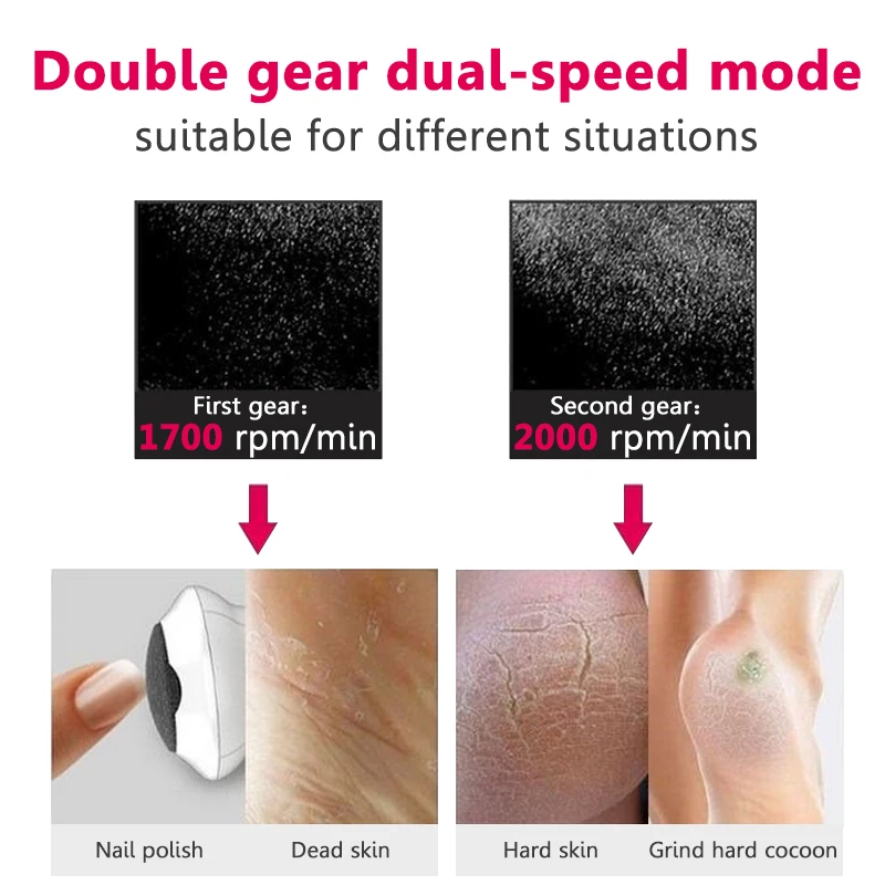 Использование: удаление мозолей, функция массажа ног, функция восстановления ног, пяточная шлифовка Слоя Кутикулы.Вакуумная система поглощения.Быстро насаживающийся.Usb-кабель для зарядки.Два алмазных шлифовальных станков.Оснащен чистой губкой для хранения мусора на месте.