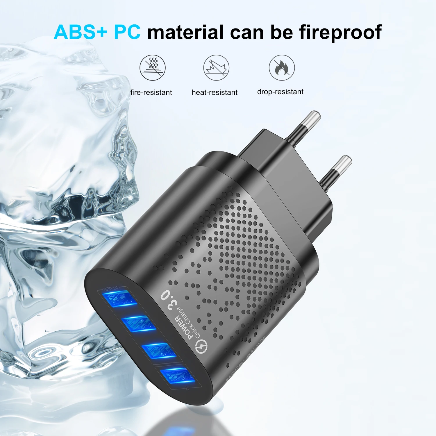 GTWIN Быстрая зарядка 3,0 USB зарядное устройство 4 порта Быстрая зарядка настенное стандартное зарядное устройство для iPhone Samsung Xiaomi US EU вилка адаптер