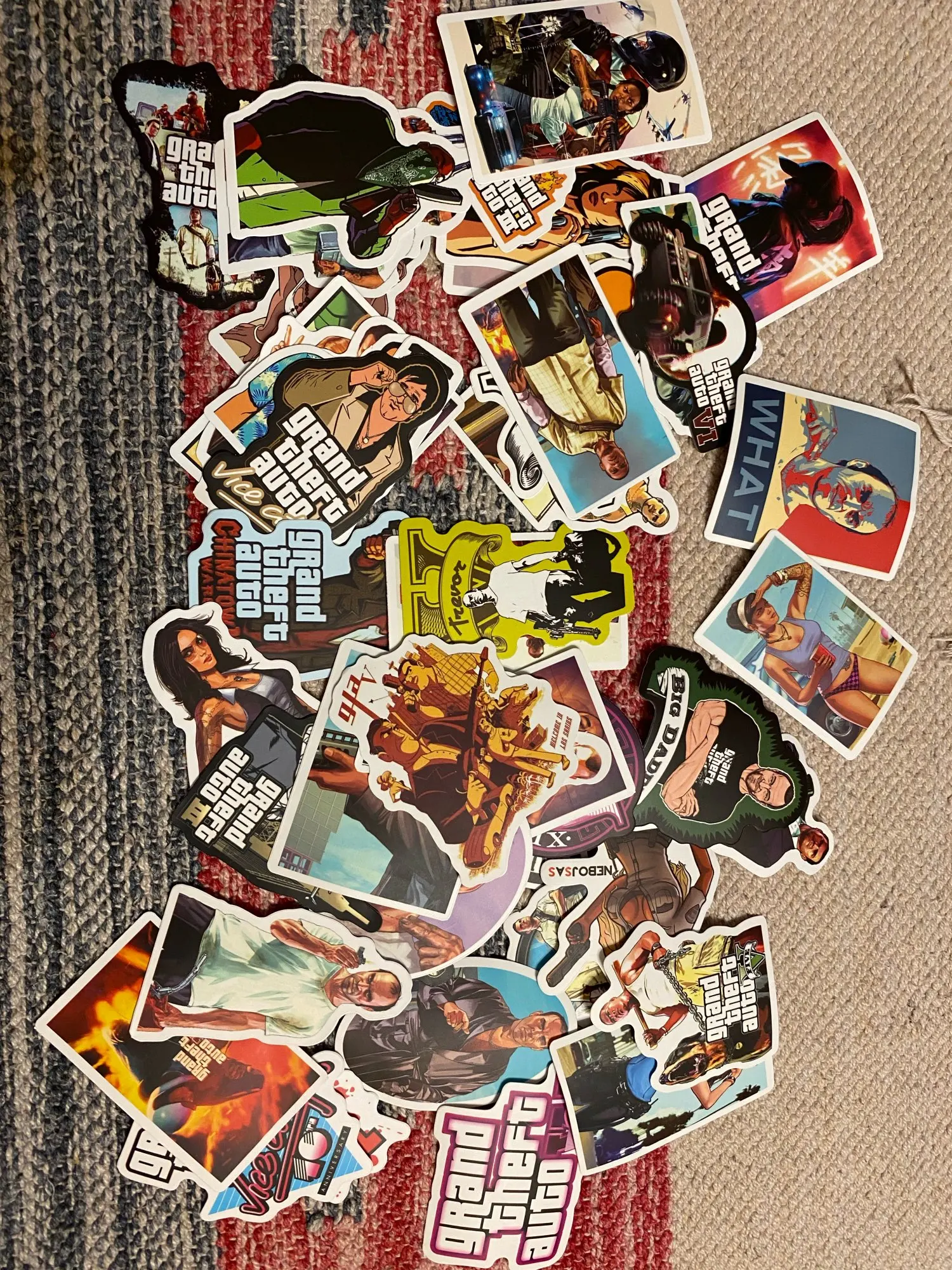 Некоторые красивые наклейки в этом. Хотелось бы увидеть немного меньше (fan art) gta VI и, возможно, немного больше GTA IV или viccity, но крутой комплект не меньше