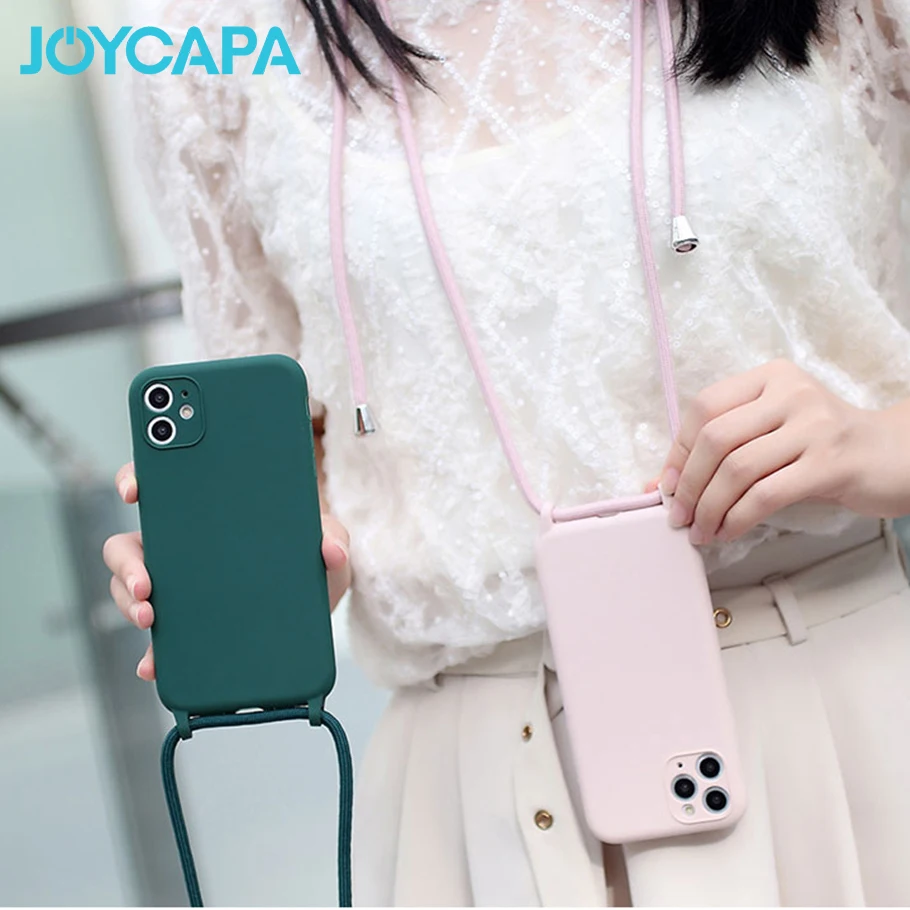 Чехол с цепочкой и ремешком на шею для iPhone 12, 11 Pro, Xs MAX, XR, X, 6, 6s, 7, 8 Plus, SE, силиконовый, оригинальный