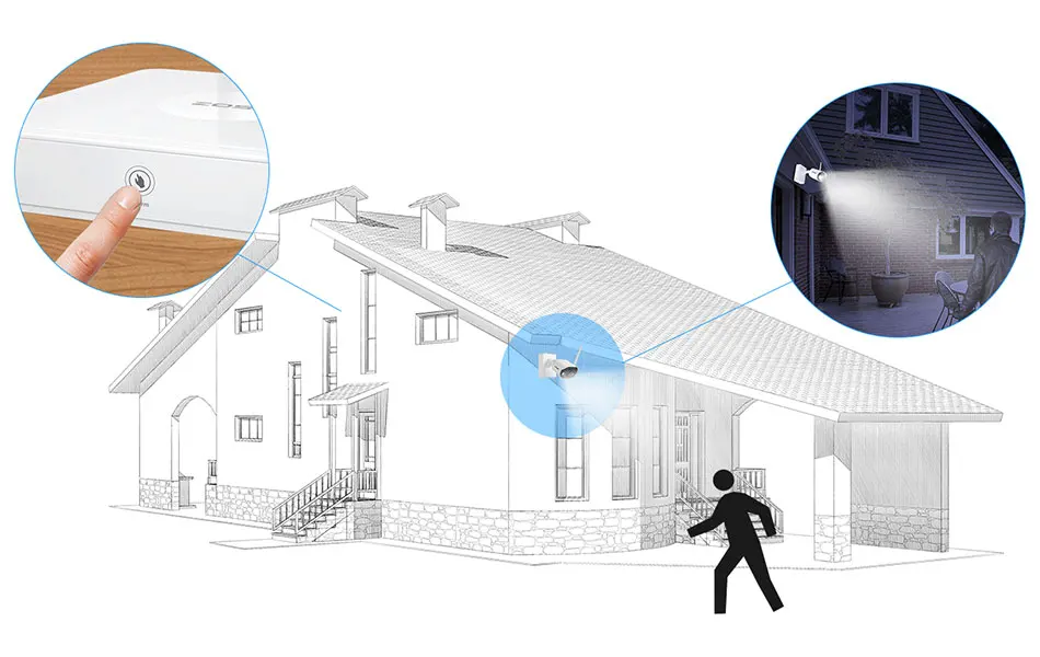 Умный PIR (пассивный инфракрасный) датчик, с легкостью обнаруживает движение объектов, выделяющих тепло, поэтому он может отличить человека от падающих листьев и ветвей деревьев. Для большей точности камеру рекомендуется устанавливать примерно в 6 метрах от места, за которым вы хотите осуществлять наблюдение.