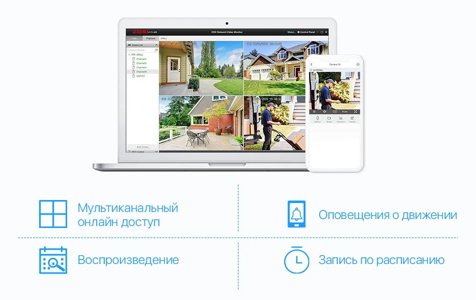 Следите за своим домом или бизнесом через смартфон, планшет или компьютер. Включайте прямую трансляцию, воспроизводите важные моменты, проверяйте все, что вам нужно, даже на расстоянии тысячи километров.