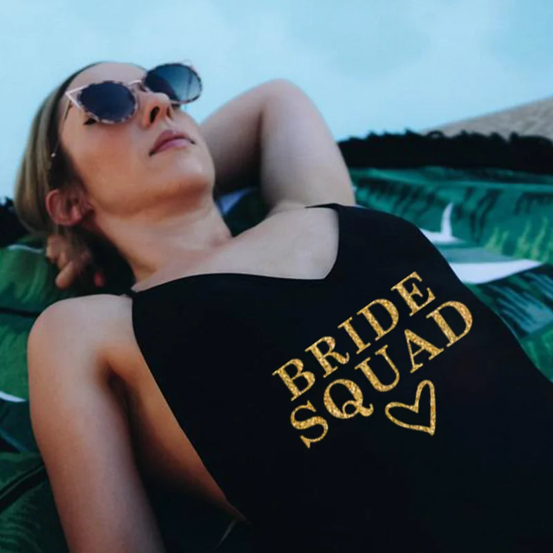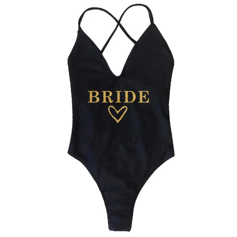Свадебная вечеринка, пляжная одежда для невесты, бикини с золотой надписью, женский слитный купальник