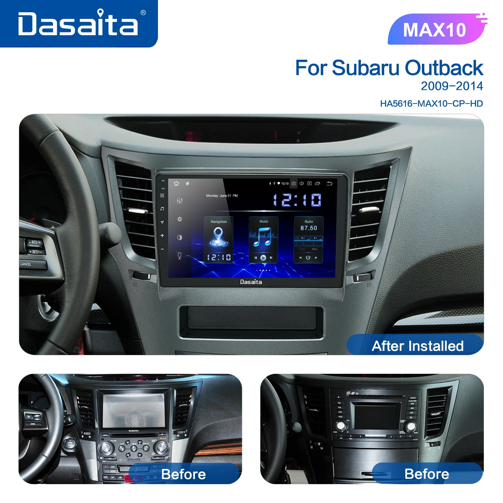 Dasaita автомобильный 1 din GPS Радио Android 10,0 TDA7850 для Subaru Legacy Outback 2009 2010 2011 2012 2013 2014 USB MP3 9 "сенсорный экран