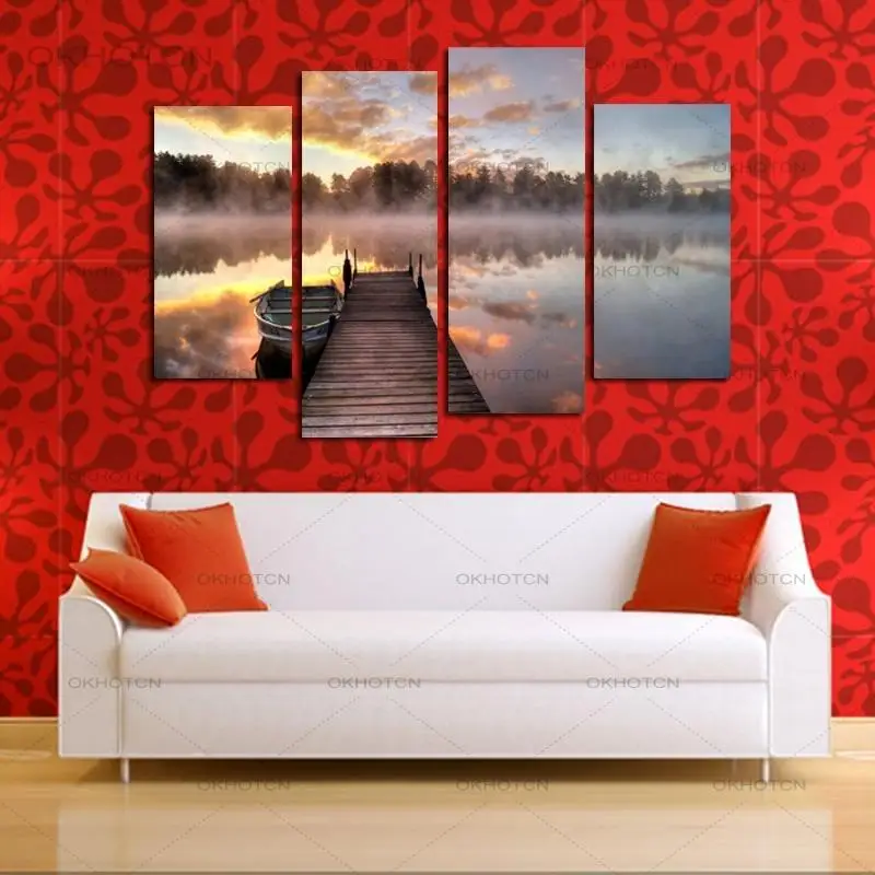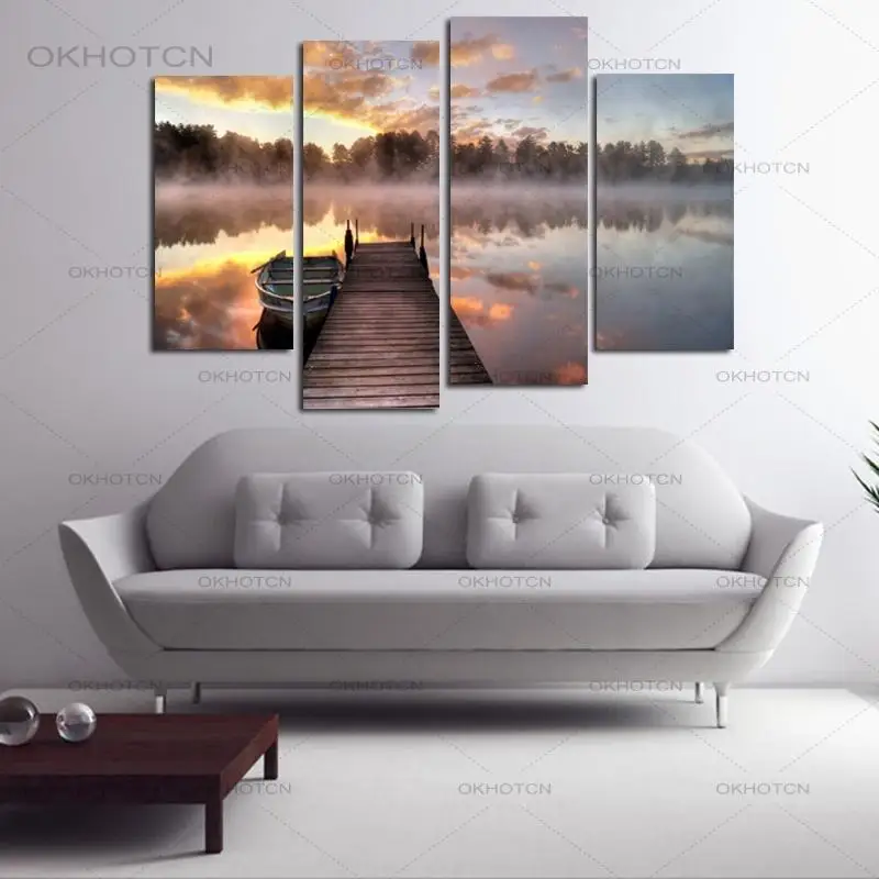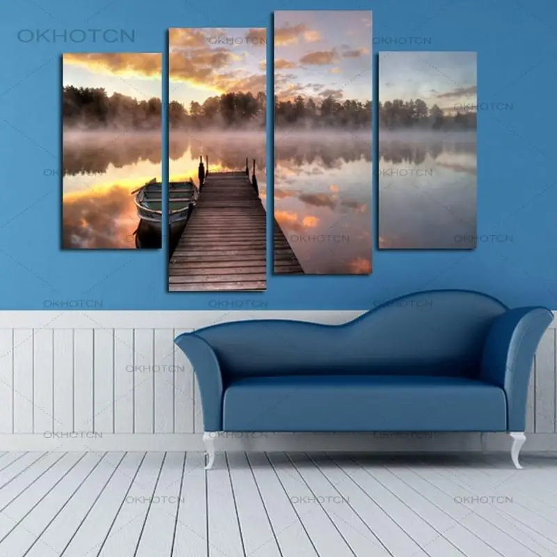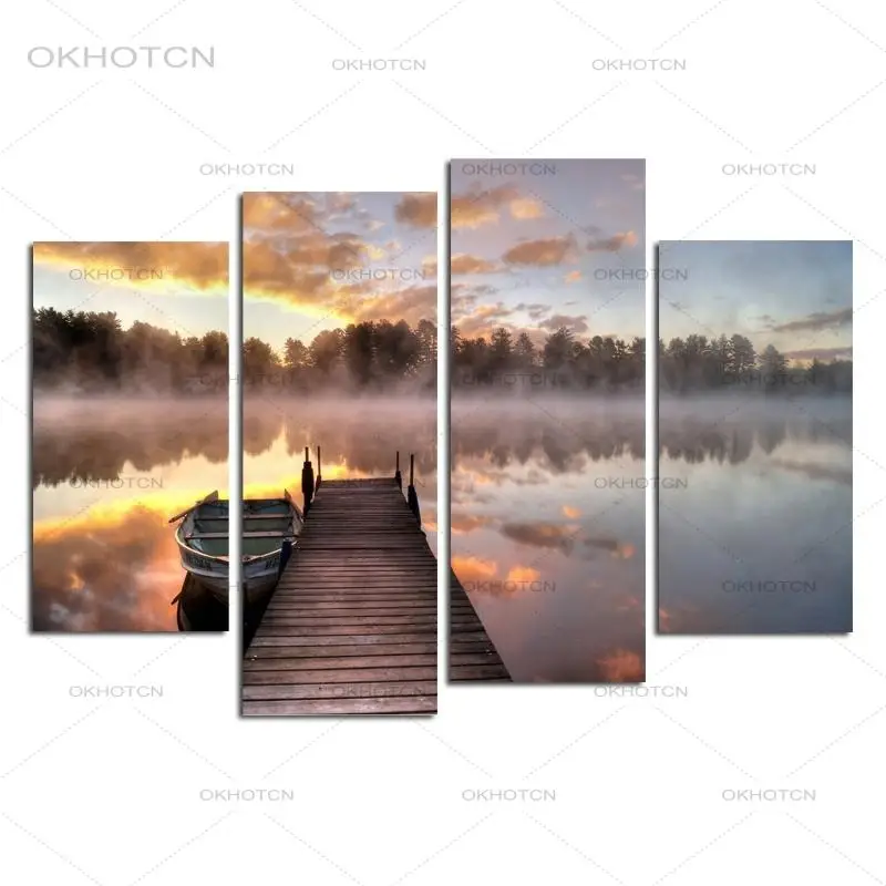 Картина на холсте, 4 шт., пейзаж, постеры, без рамки, Настенная картина, закат, морской пейзаж, постер, Современный домашний декор, роспись для спальни