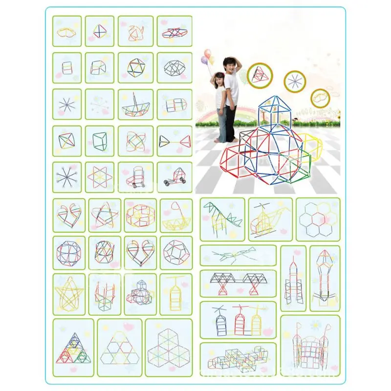 Детский конструктор из разноцветных пластиковых трубочек, развивающие игрушки для использования в помещении и на улице, Комбинированная игра-головоломка, подарок