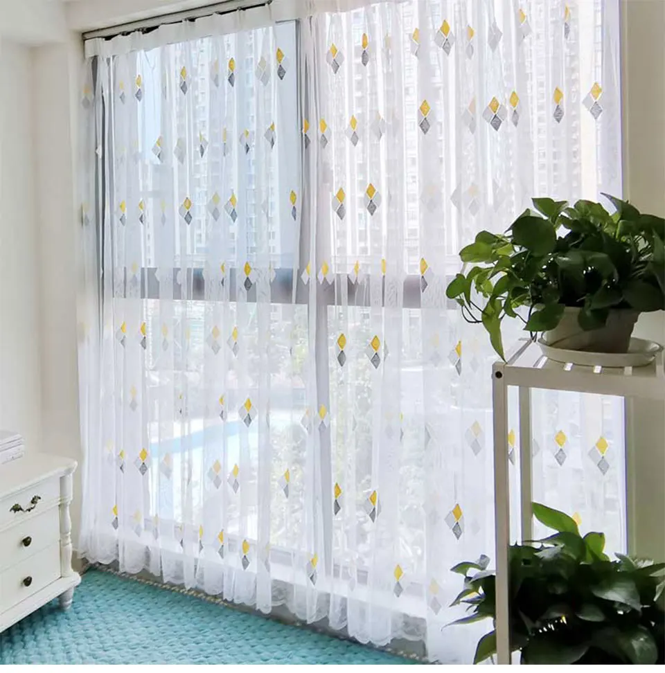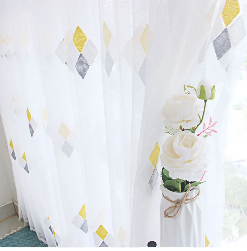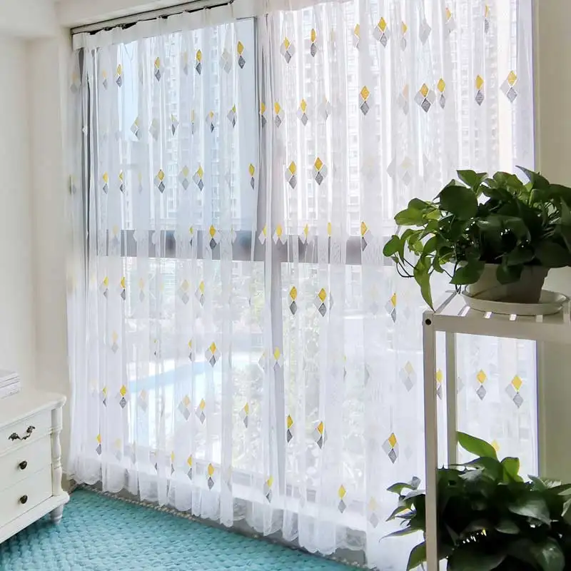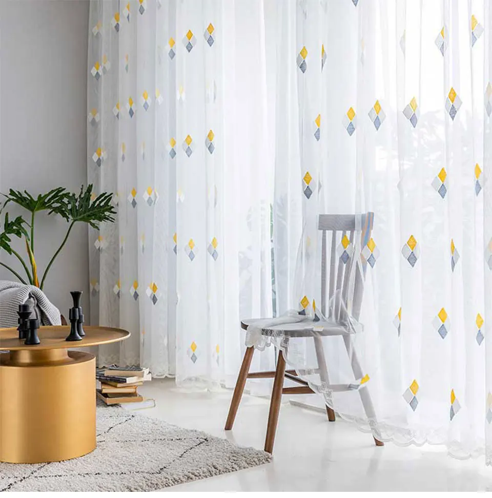 Тюлевая занавеска с вышивкой в скандинавском стиле для гостиной, спальни, занавеска из тонкой ткани с ромбами на кухонные занавески год