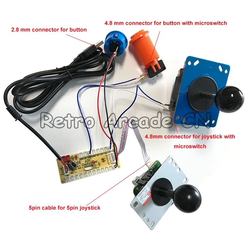 Аркадные аксессуары ПК USB Нулевая задержка кодировщик панель управления 5 в с 2,8 мм 4,8 мм 5Pin кнопка кабель джойстика Dit Kit
