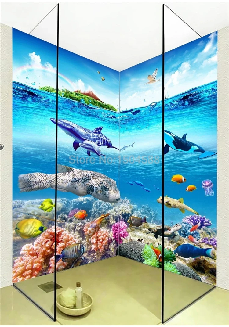 ПВХ самоклеящиеся водонепроницаемые Настенные обои для ванной 3D подводный мир морской жизни фрески Papel De Parede 3D наклейки на стену