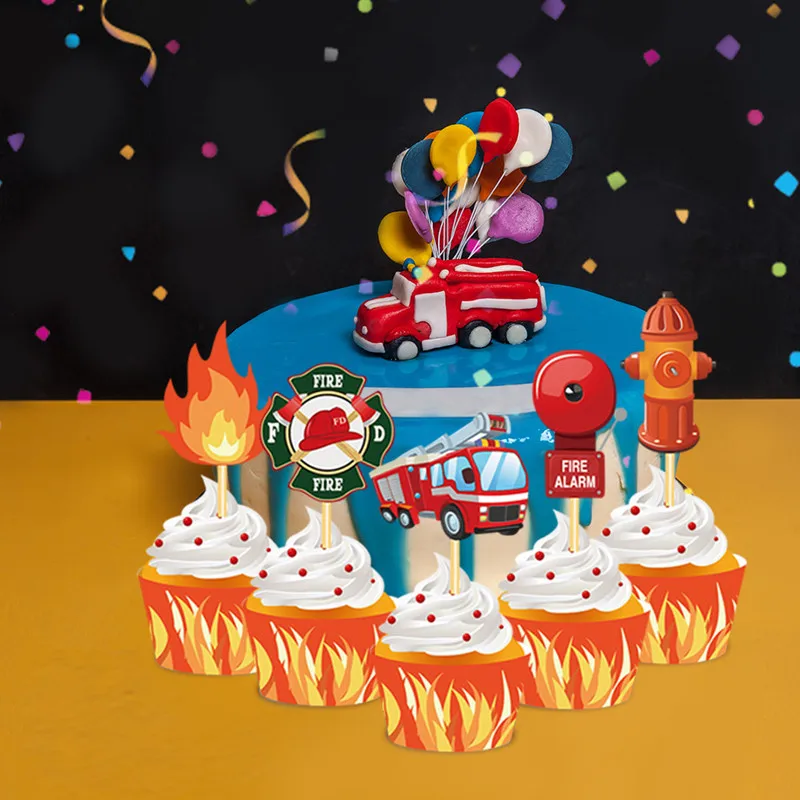 Пожарный, детский день рождения, раньше, раньше, без палочек, Детские сувениры для мальчиков, украшение, пожарный, тема, обертка для кексов
