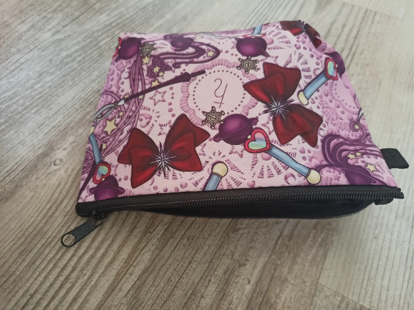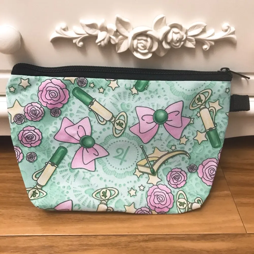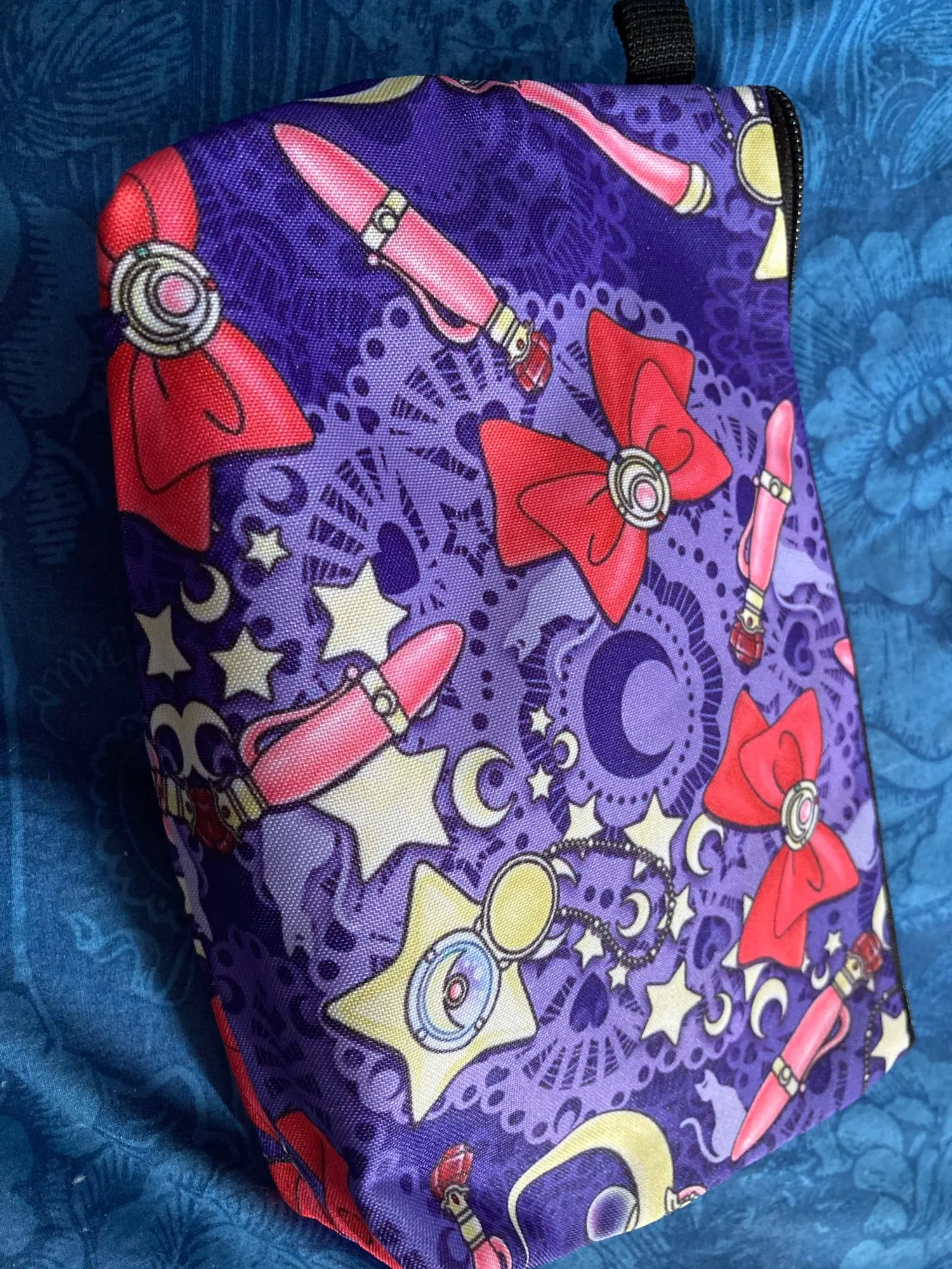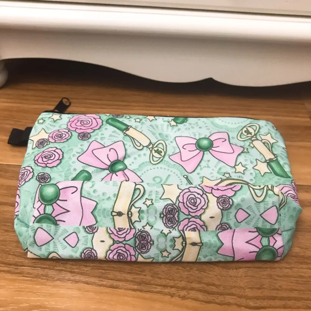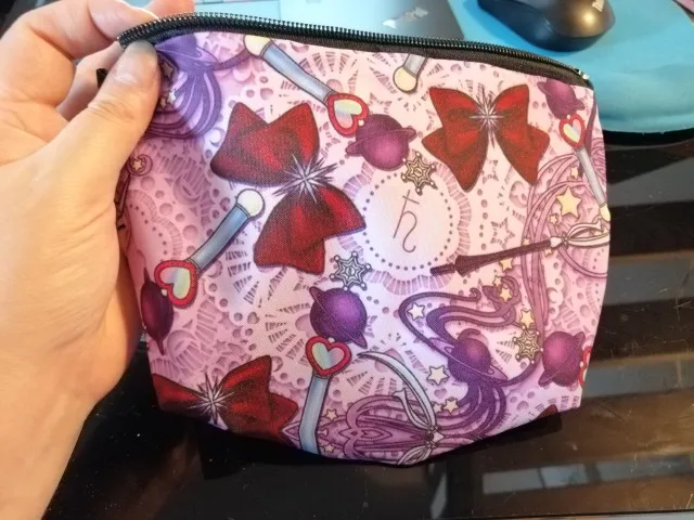 Люблю эту косметичку. Изготовлен из прочной молнии и прочного материала. Может легко поместиться в много вещей. Я, вероятно, буду покупать по одному, так как мне нравятся рисунки и найти размер, идеально подходящий для многих вещей.