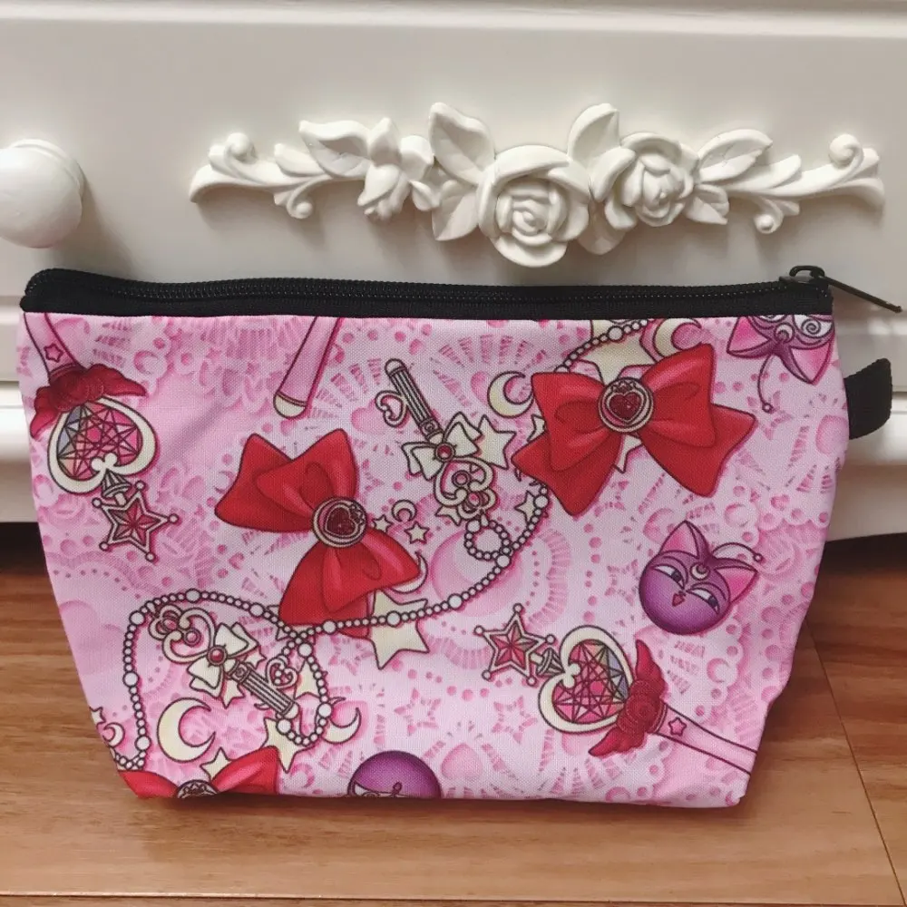 Красивая косметичка с бантом, женская косметичка с волшебными палочками, косметичка с бантом для девушек, Женский чехол для косметики