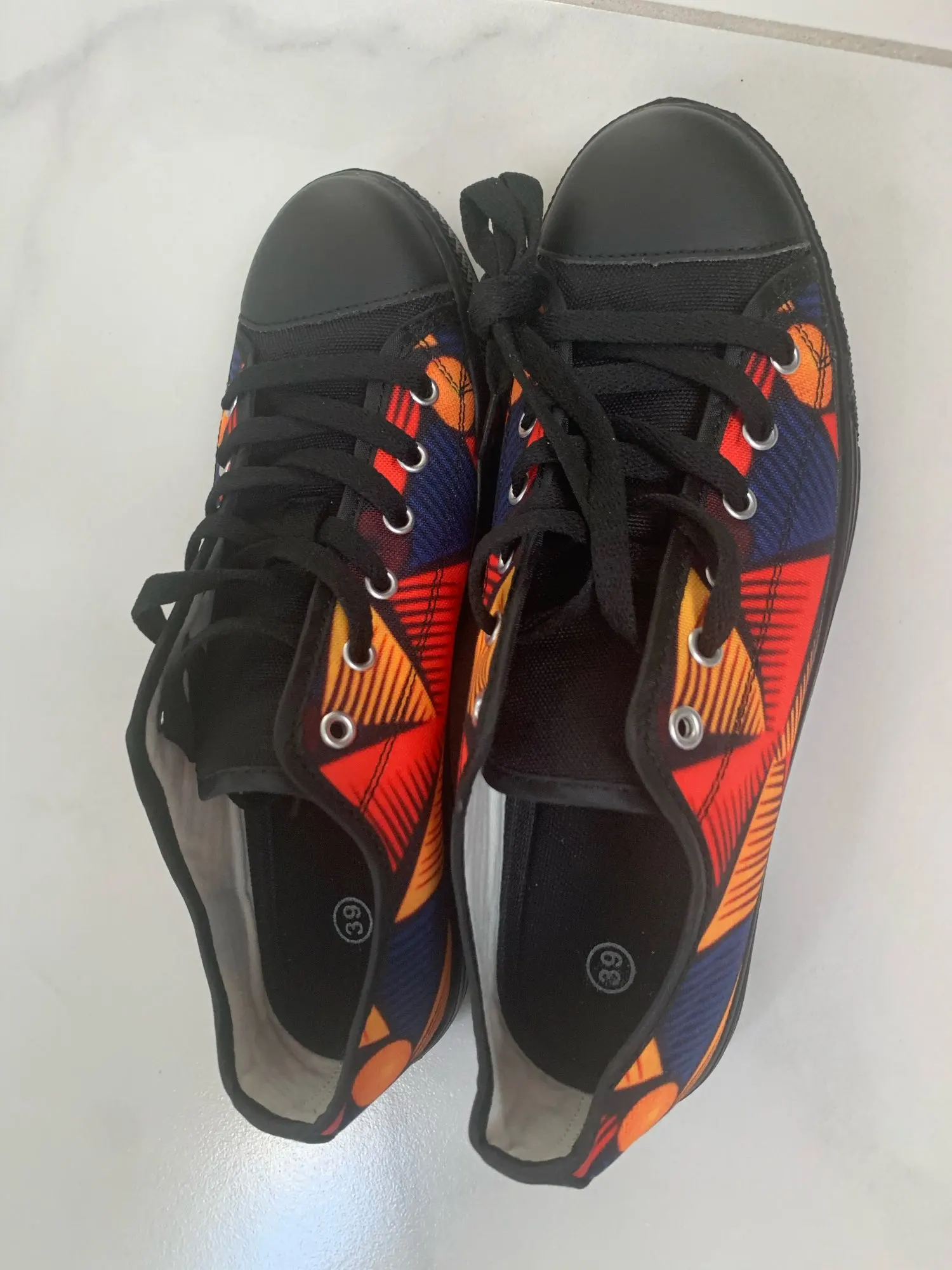 Кроссовки женские холщовые на шнуровке, с Африканским принтом