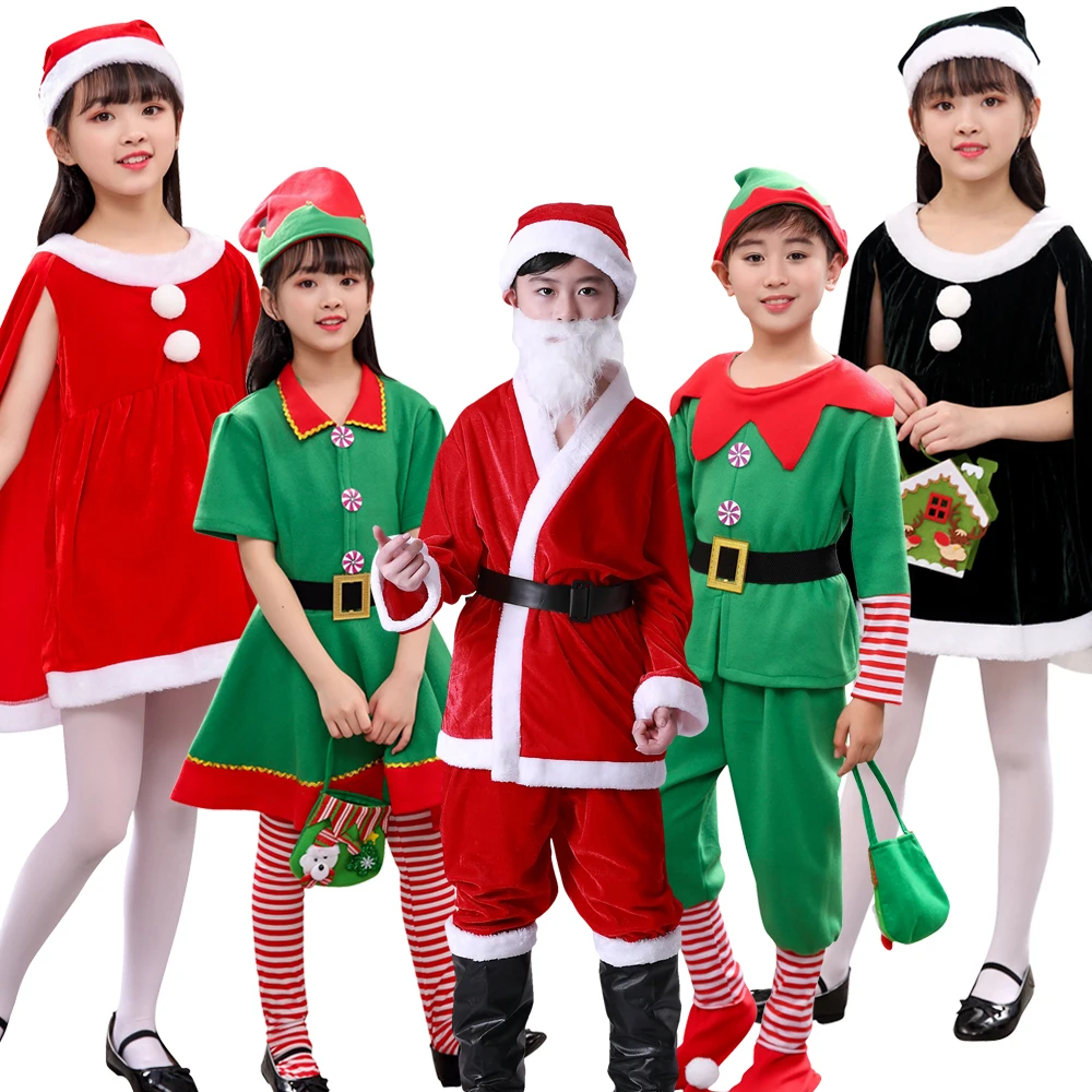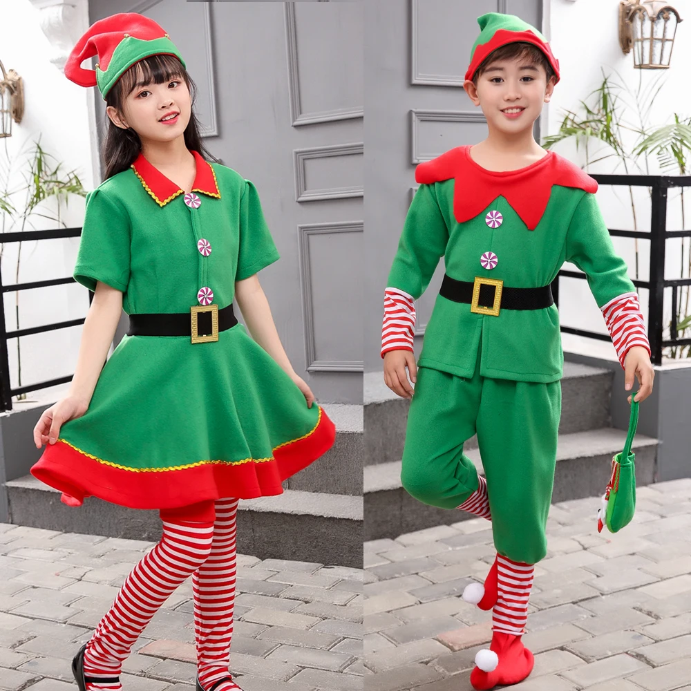 2020 изумрудно-зеленым, бело-серые штаны для девочек с рождественским изображением фестиваля костюмов с изображением Санта Клауса, для девочек; Новинка год Детский костюм необычное рождественское платье вечерние платья