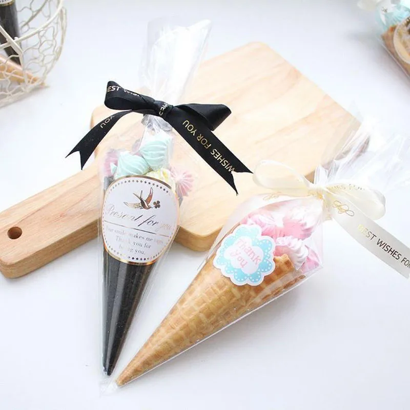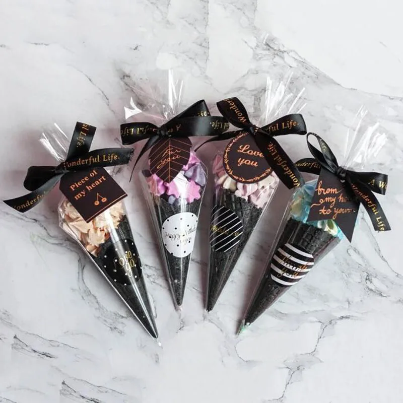 Прозрачные пластиковые пакеты для попкорна в форме конуса, 50 шт.лот, пакеты для конфет, товары для рождества, дня рождения, Подарочные Упаковочные пакеты