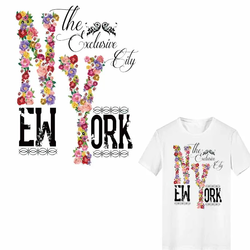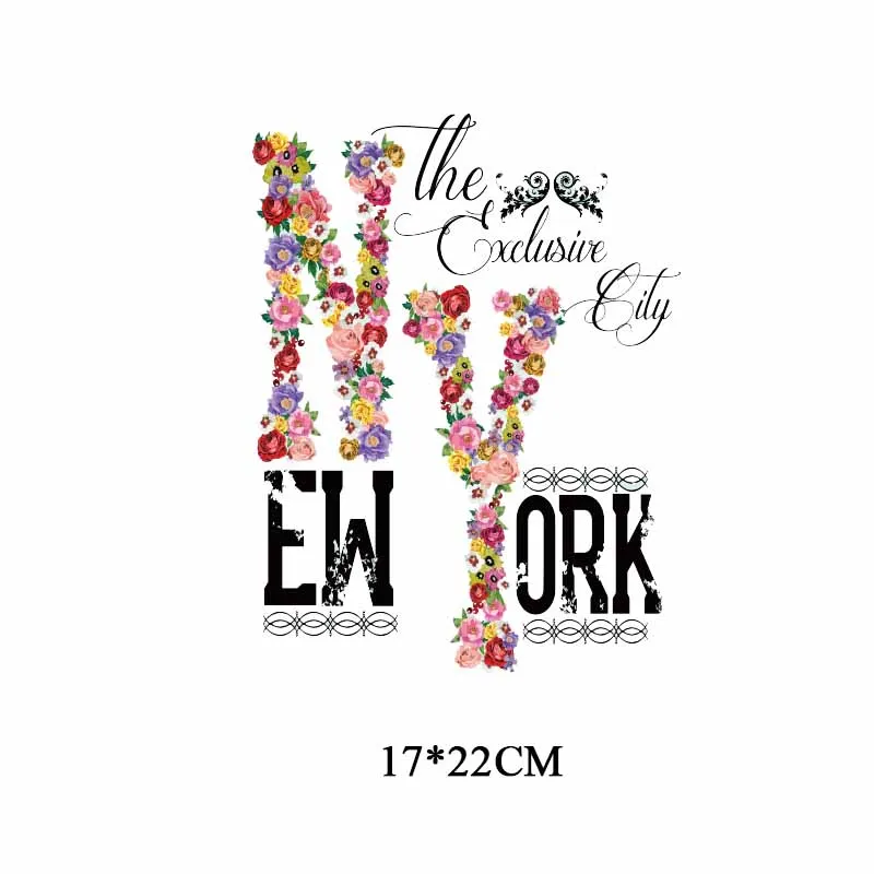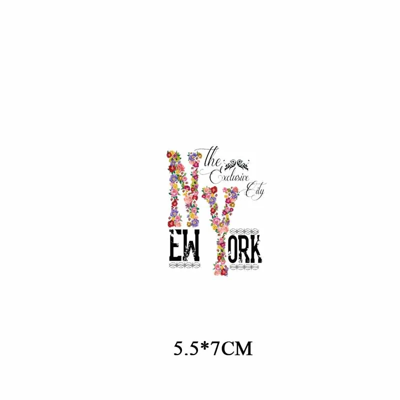 Утюжок для переноса цветочных букв, нашивки для девочек, одежда, сделай сам, футболка, платье, Нью-Йорк, наклейки в полоску, одежда, жар пресс