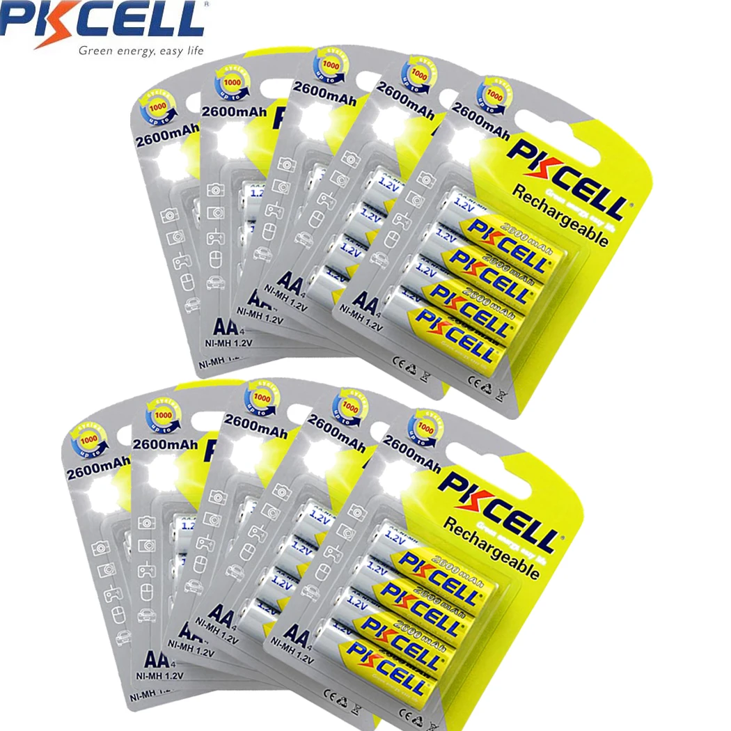 40 шт10 карт PKCELL AA 1,2 V NIMH аккумуляторная батарея 2600mah реальная емкость аккумулятор АА для камеры